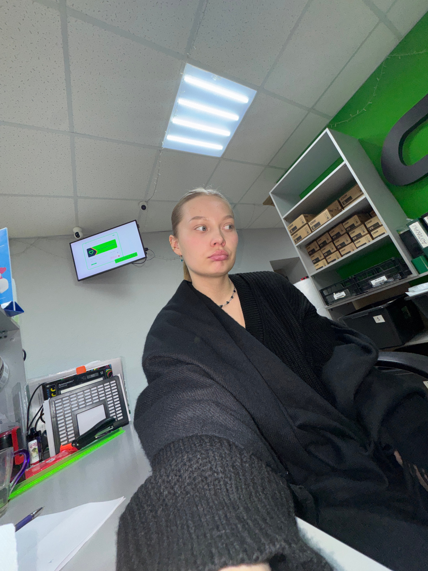 A woman is in a room with a television screen displaying "HACK CHECKER." A shelf filled with boxes is in the background. A security camera is mounted on the ceiling. The location is Chaikovsky, Russia…read more