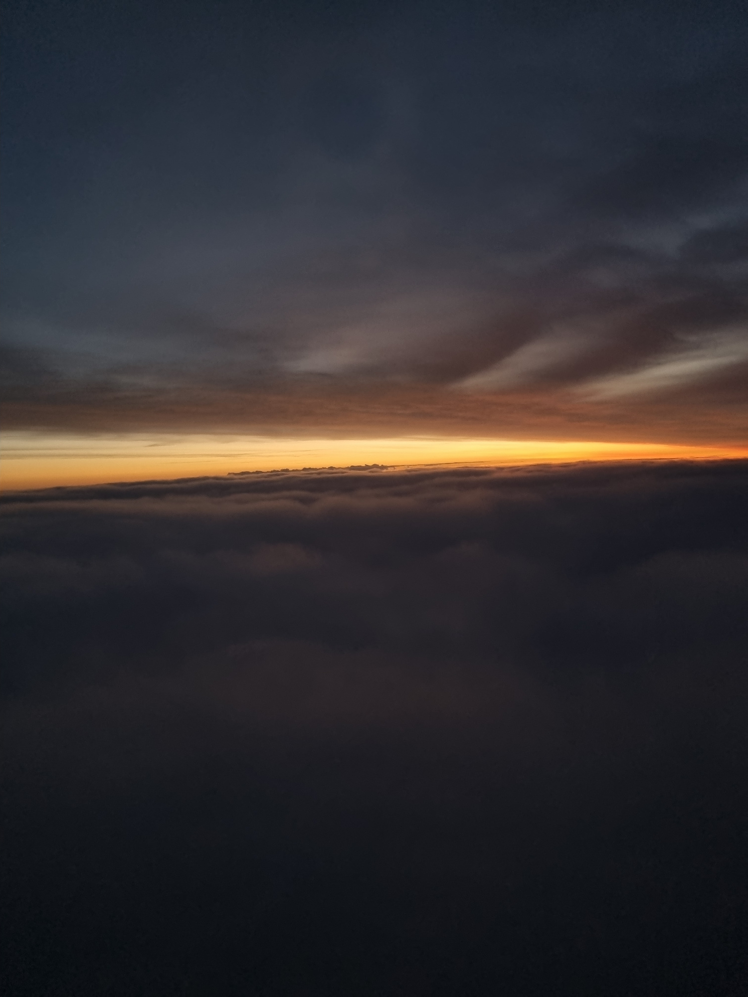 The image depicts a view of the sky at dusk or dawn, likely taken during a transition period of weather. A bright, near-vertical band of light with yellow and orange hues dominates the center, potentiβ¦read more