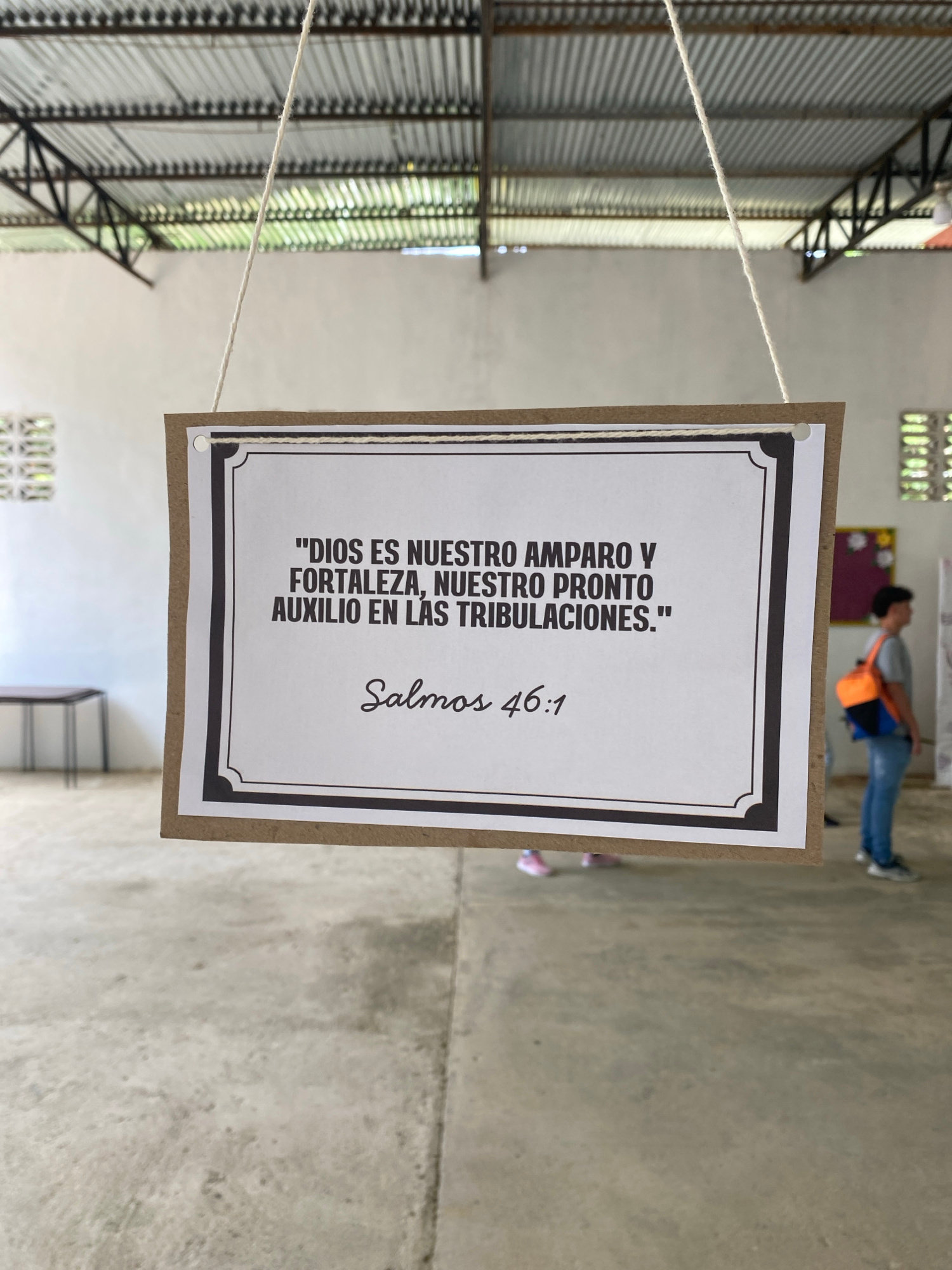A photograph depicts a sign hanging by strings in what appears to be an indoor setting. The sign is composed of a piece of brown paper as its base, with a white sheet printed with black ink affixed to…read more