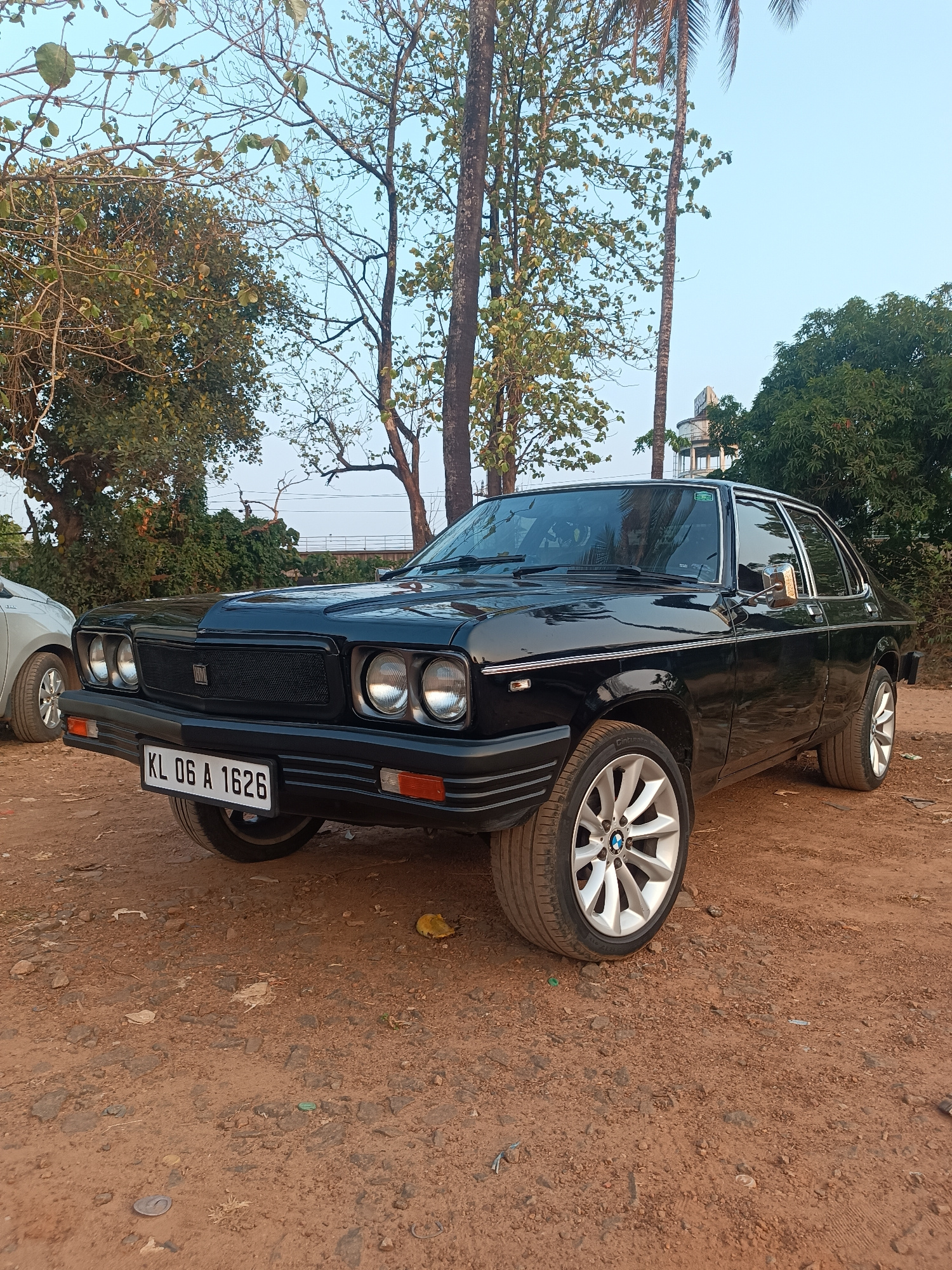A black car with license plate "KL 06 A 1626" is parked on a dirt lot. The car has circular headlights and a mesh grill. A partially visible silver car is on the left. Trees surround the lot, and a wa…read more