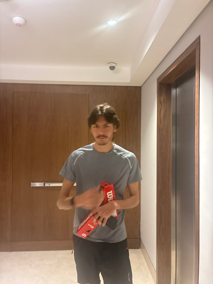 The image depicts a male subject standing in an indoor hallway of a building in Mexico City, Mexico. The subject, appearing to be a young adult with dark, medium-length hair and a mustache, is positio…read more