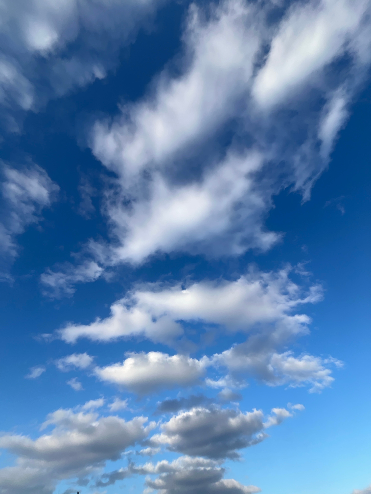 The media file displays a vibrant daytime sky filled with various cloud formations. The dominant color is a rich, deep blue, transitioning to a lighter blue towards the top right, suggesting depth and…read more