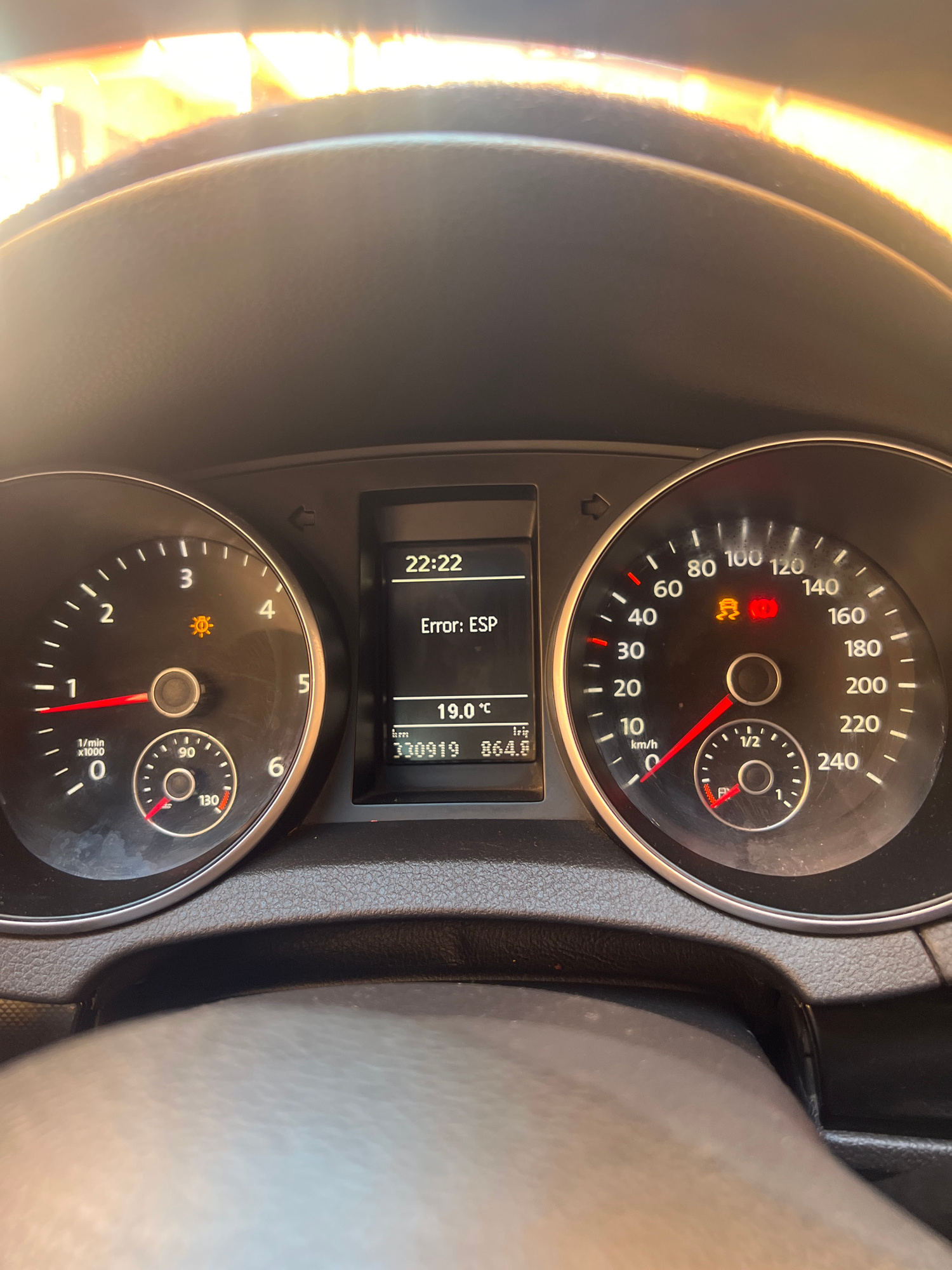The image shows the dashboard of a car. The dashboard displays an error message "Error: ESP," a time of 22:22, a temperature of 19.0°C, and a mileage of 33019 km. The speedometer reads close to 0 km/h…read more