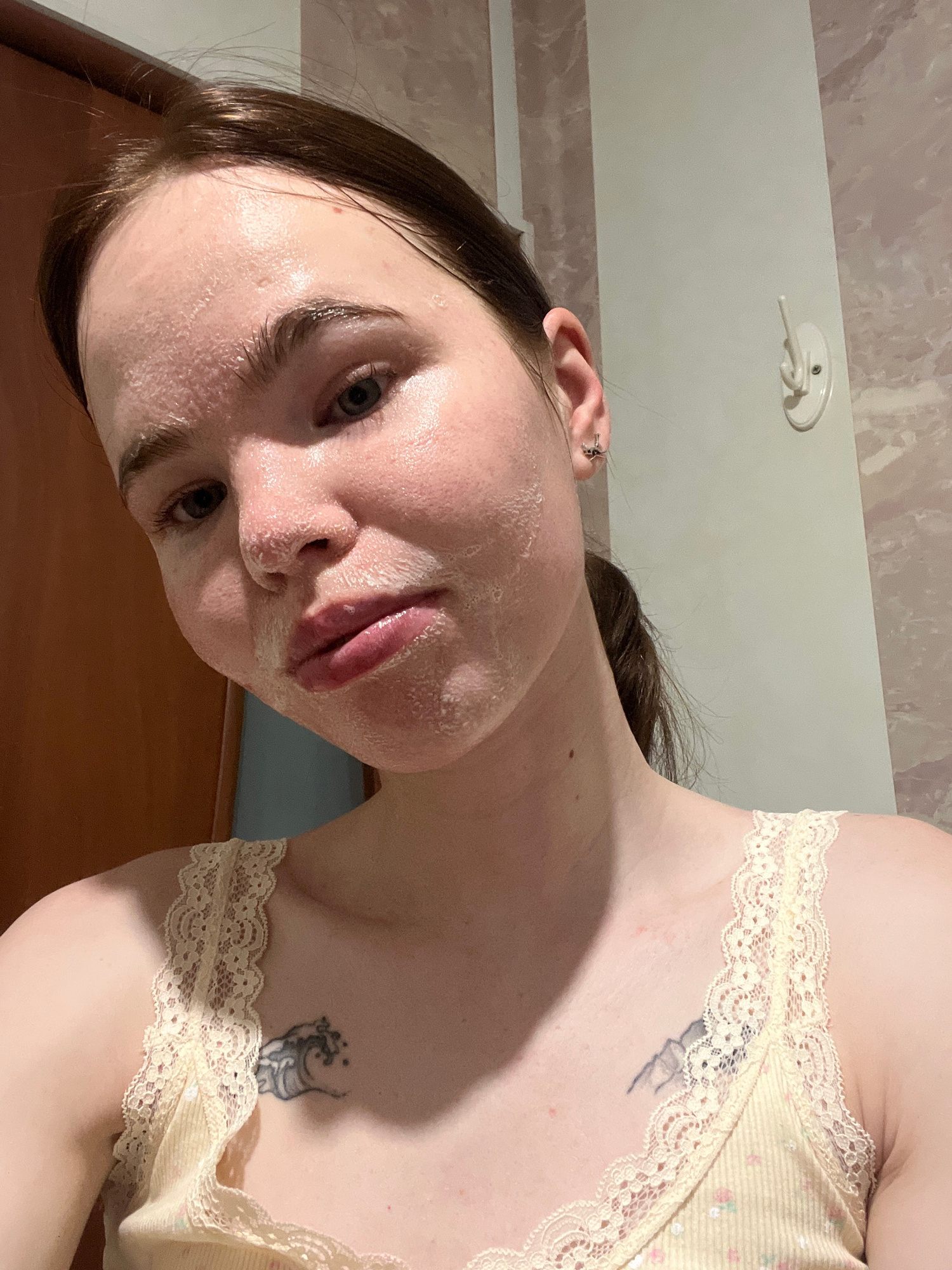 A young woman is pictured from a low angle, with her face prominently displayed. She appears to be wearing a cosmetic mask. Her hair is dark and pulled back. The woman is wearing a light yellow tank t…read more