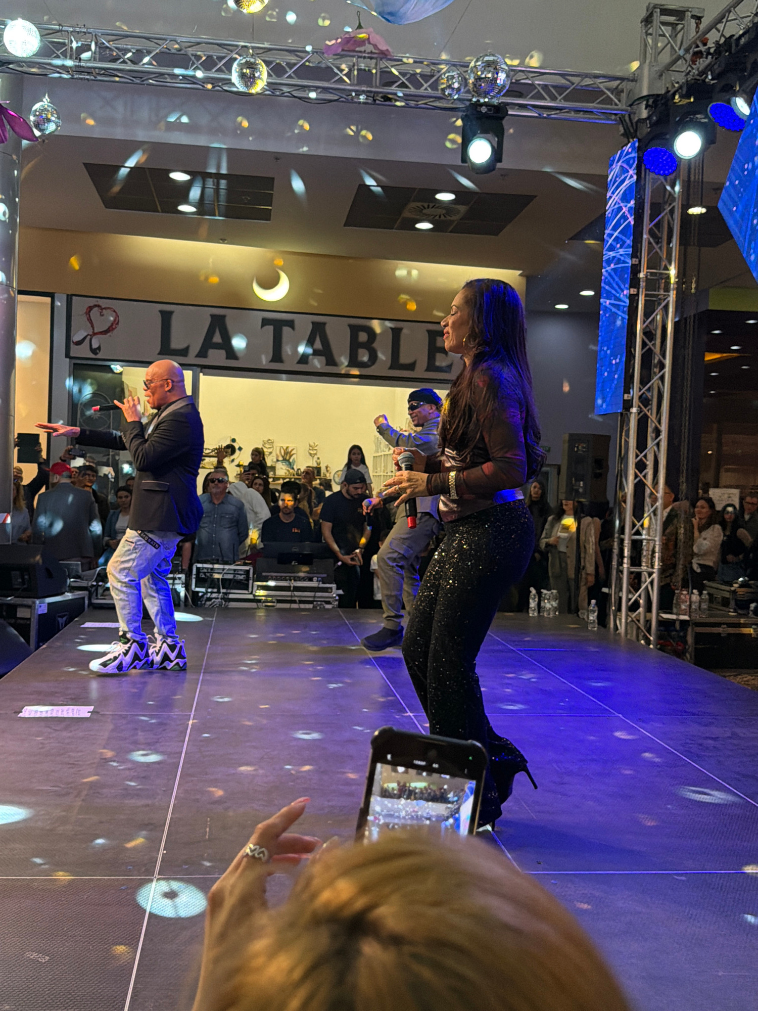 This media file captures an energetic indoor event, likely a performance or party, set at night in Pleven, Bulgaria. The image, originally rotated, shows a brightly lit stage where several individuals…read more