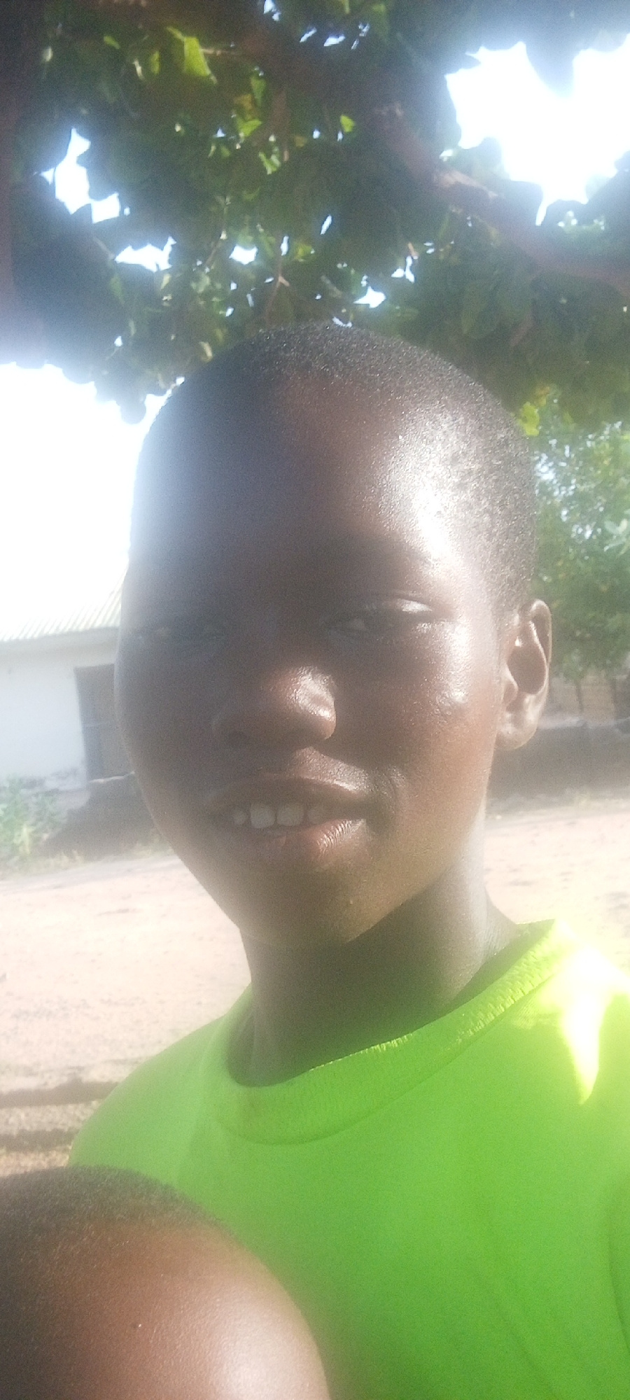A close-up shot of a young person with dark skin and short hair, wearing a bright green t-shirt. The person is smiling slightly, showing their teeth. The background shows a building with a window and…read more