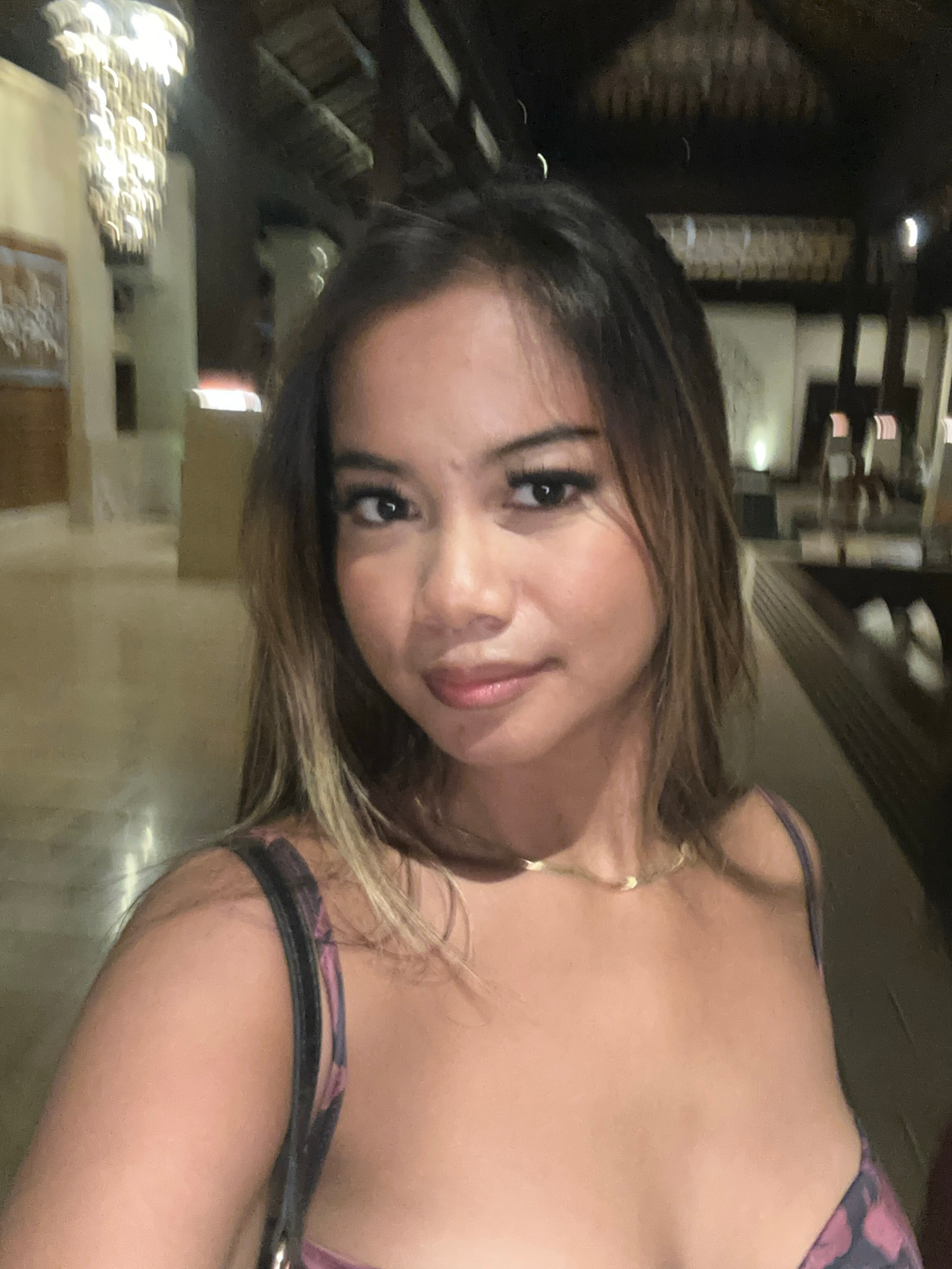 The image features a close-up selfie of a young woman, captured indoors, likely during the evening or night due to the prominent artificial lighting and dark ambiance. She is positioned diagonally in…read more
