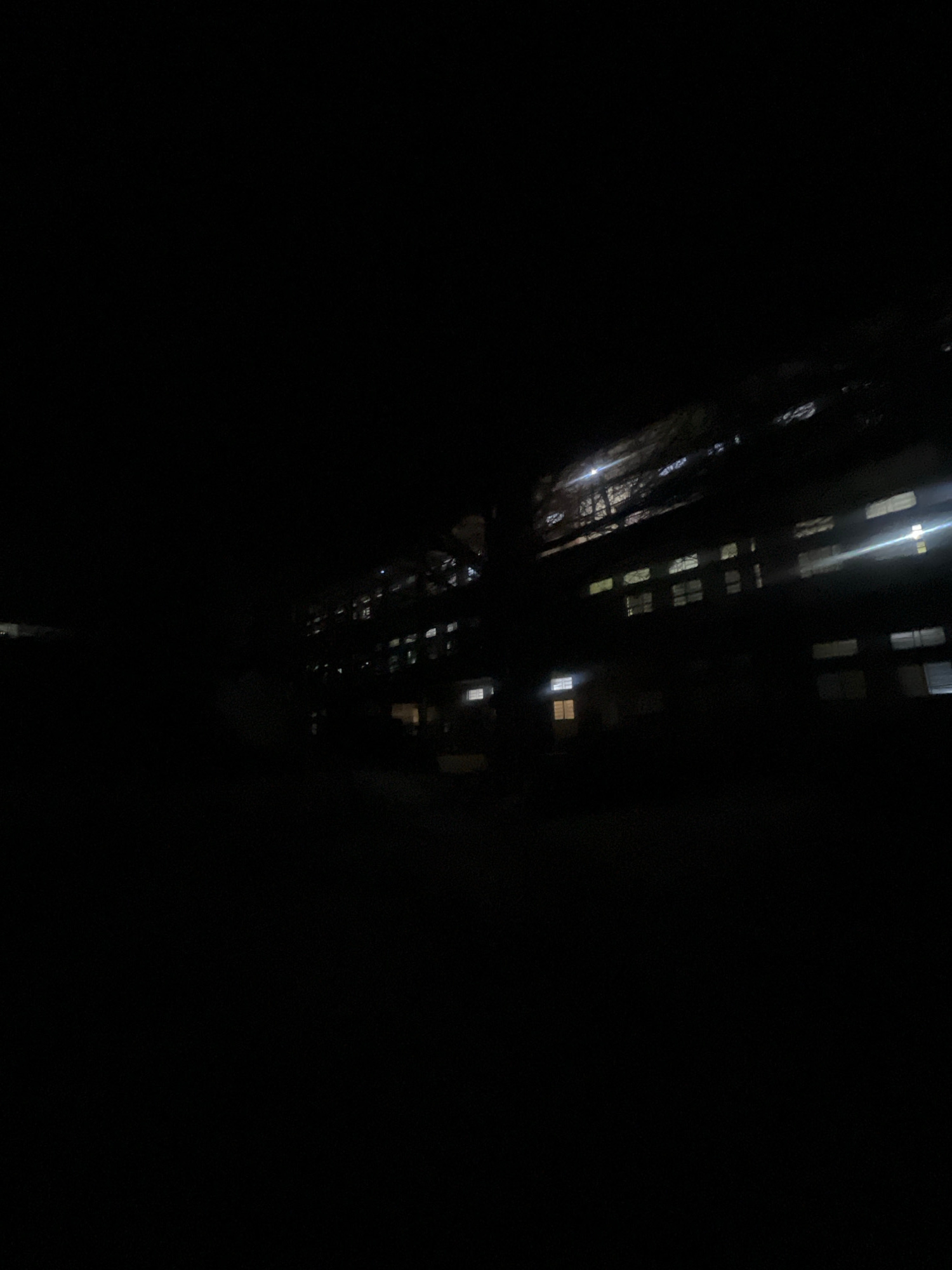 The image, taken at night, depicts a view upward through a dark shaft, possibly an alley or narrow space between buildings. Several windows, likely from a multi-story building, are visible in the uppe…read more
