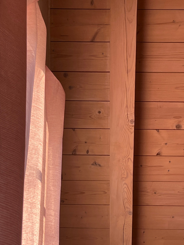 The image depicts an interior architectural detail within a structure located in Hohenbrunn, Germany. The scene is dominated by a vertical composition of elements. On the left, a light-colored, possib…read more