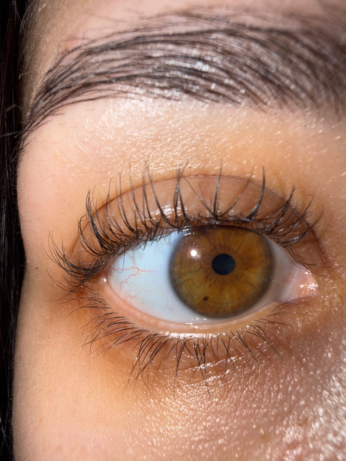A very close-up, macro shot captures the left human eye of an individual in Votkinsk, Russia. The eye is angled, looking slightly upwards and to the right. The prominent subject is the iris, which is…read more
