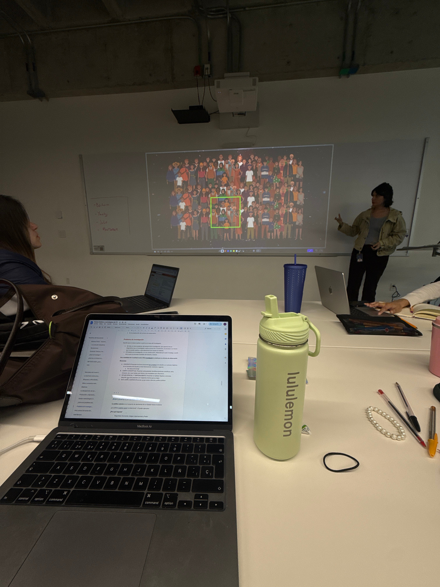 A photograph shows an indoor scene, likely a meeting or classroom environment. A projector is casting an image of a crowd onto a wall, and some people are looking at the screen. One person appears to…read more