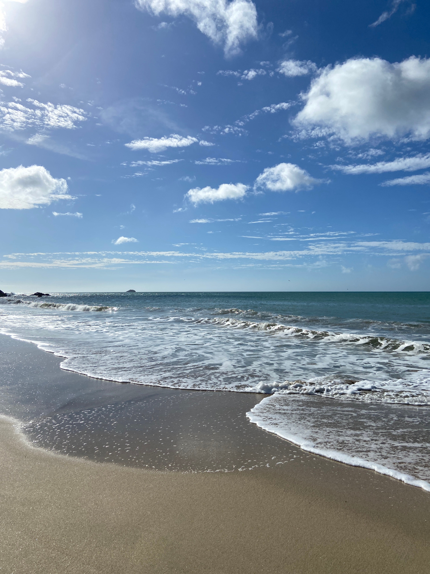 The image depicts a beach scene in Pedro González, Venezuela. The right side of the image showcases a sandy beach with waves washing ashore. The sand appears light brown, and the waves are white and f…read more