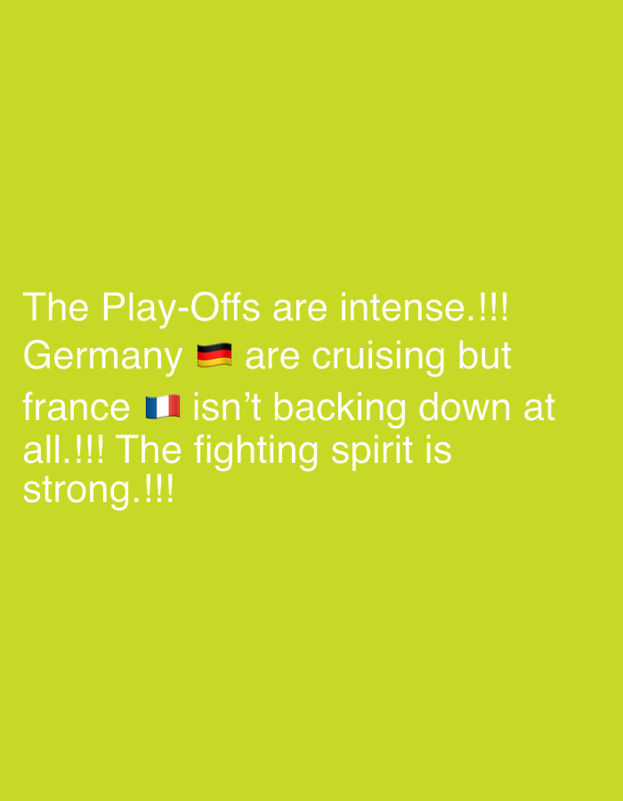 The image displays a digital graphic with a solid, uniform lime green background. In the lower-left quadrant, white sans-serif text is present, reading: "The Play-Offs are intense.!!! Germany π©πͺ areβ¦read more