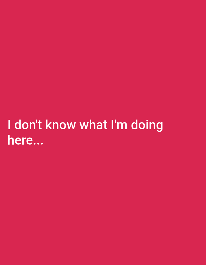 The image is a solid, medium-toned red color. In the bottom left corner, there is white text that reads, "I don't know what I'm doing here..." There are no discernible people, subjects, objects, actio…read more