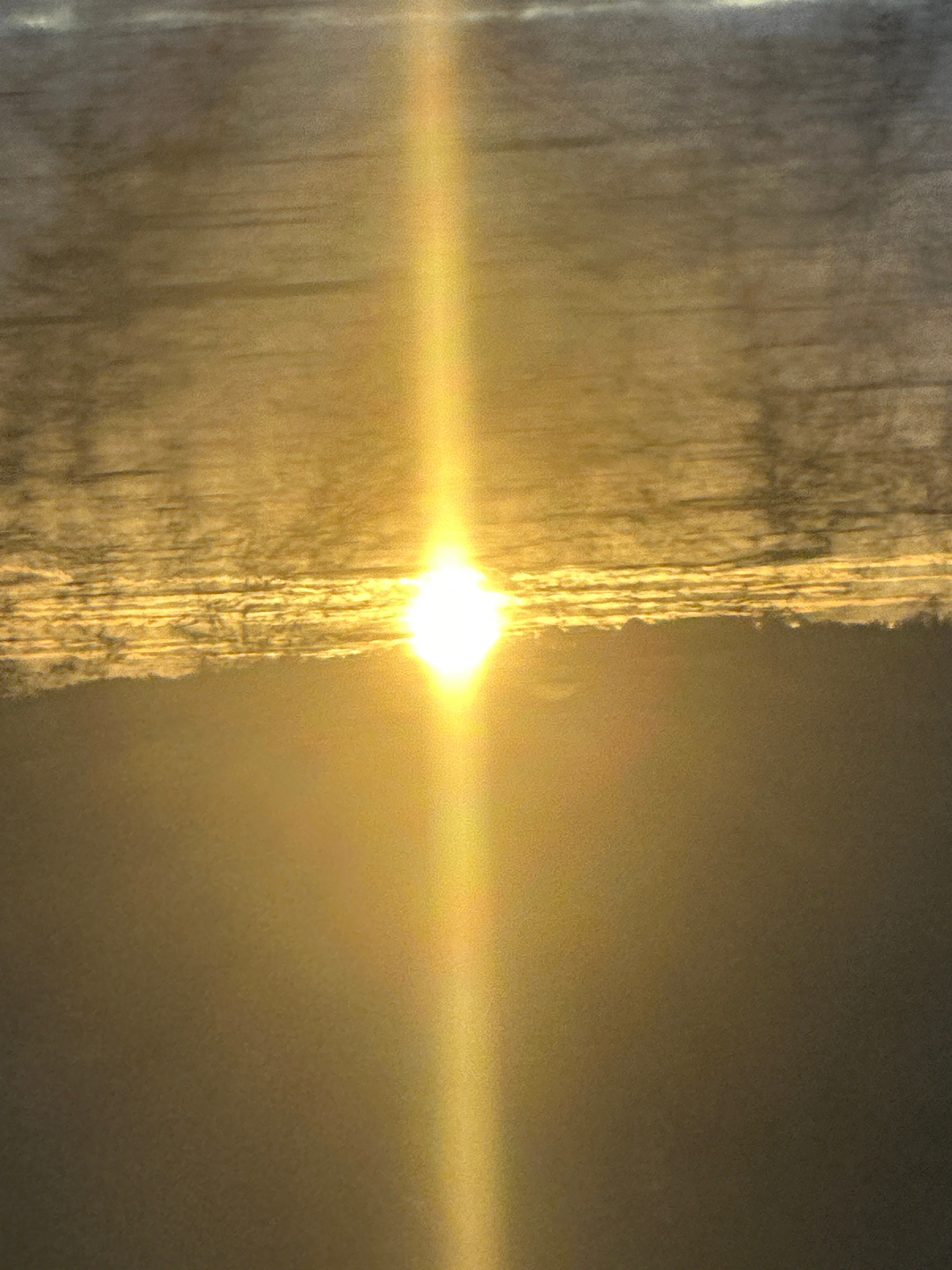 The image depicts an atmospheric scene featuring a bright, low-lying sun, indicative of either sunrise or sunset over Tunbridge Wells, United Kingdom. The solar disc is intensely bright and centered h…read more