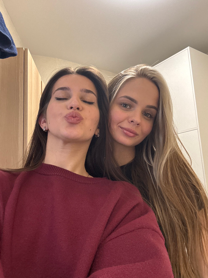 Two women are close together, posing for a selfie. The woman at the top has long, blonde hair and is smiling slightly. The woman below has dark brown hair, one eye closed, and is puckering her lips in…read more