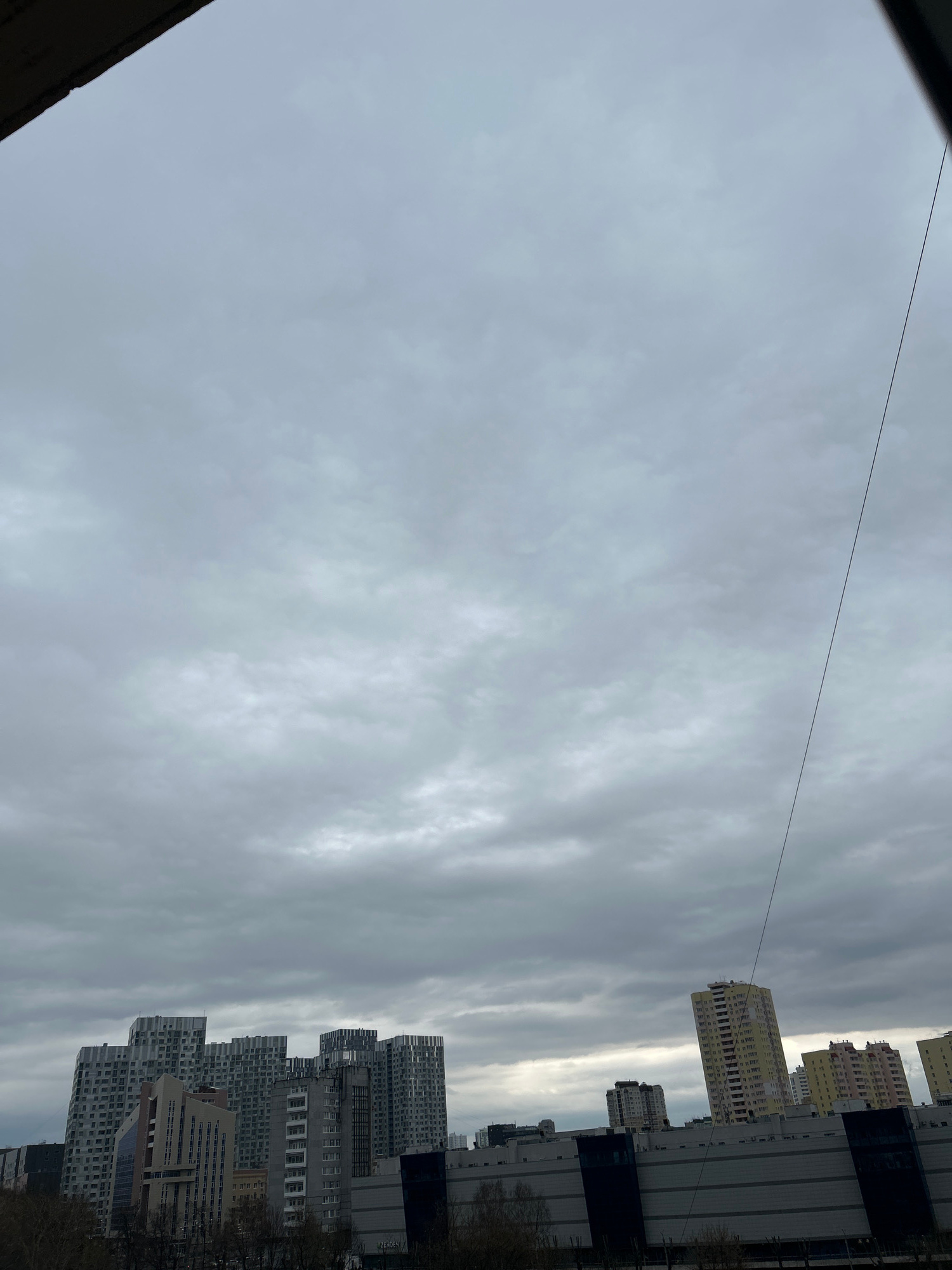 The image shows a view of several buildings against a cloudy sky. The buildings appear to be residential apartments, varying in height and color, with some being a lighter yellow and others a darker g…read more