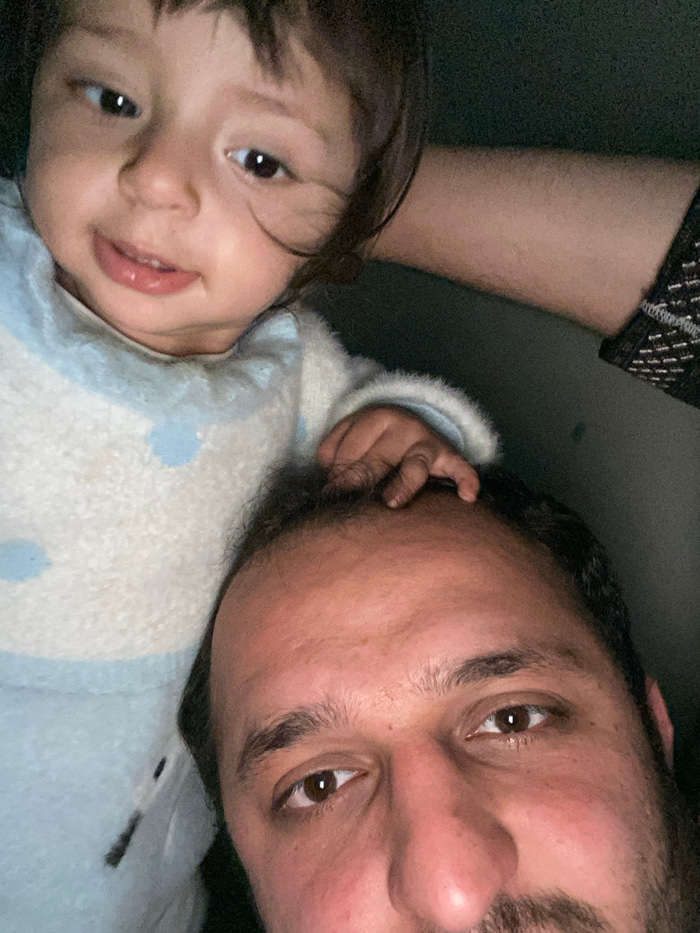 A close-up selfie captures a man and a child. The man, with dark hair and a beard, looks directly at the camera. The child, with dark hair and a slight smile, is positioned next to him. They are both…read more