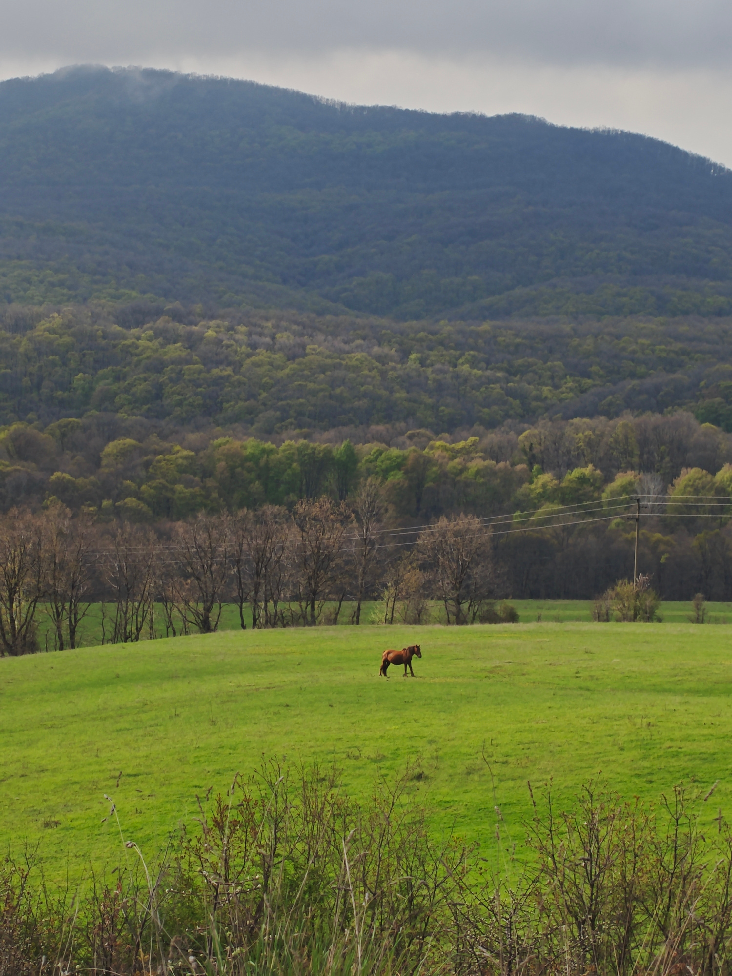 This image depicts a serene, expansive rural landscape, likely in Izgrev, Bulgaria, characterized by rolling hills and vibrant green pastures under an overcast sky. In the foreground, sparse, dry bus…read more
