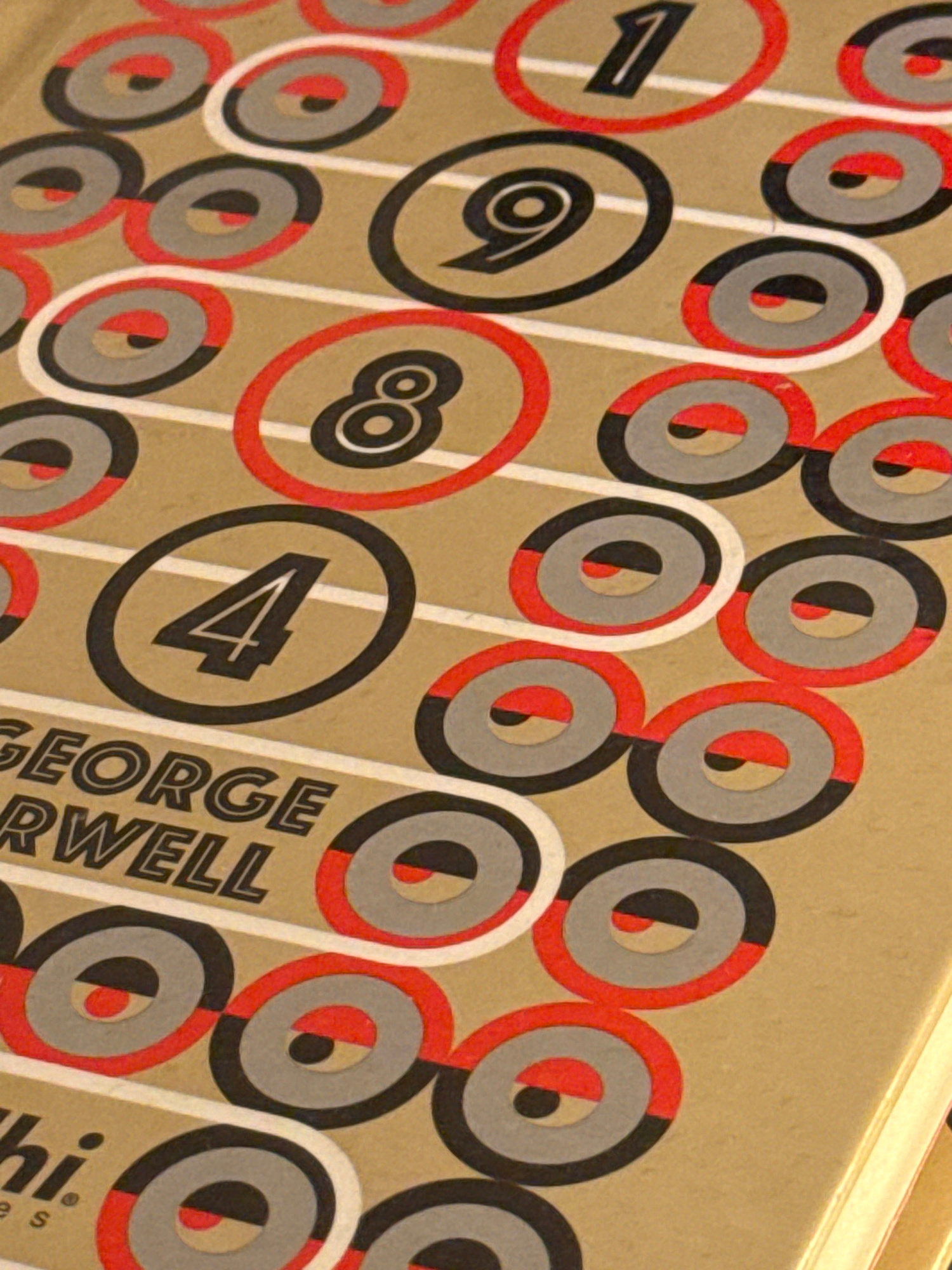 The image shows a close-up of a book cover with a geometric design. The design consists of circles in red, black, and gray on a tan background. Some of the circles contain numbers: 1, 6, 8, and 4. Par…read more