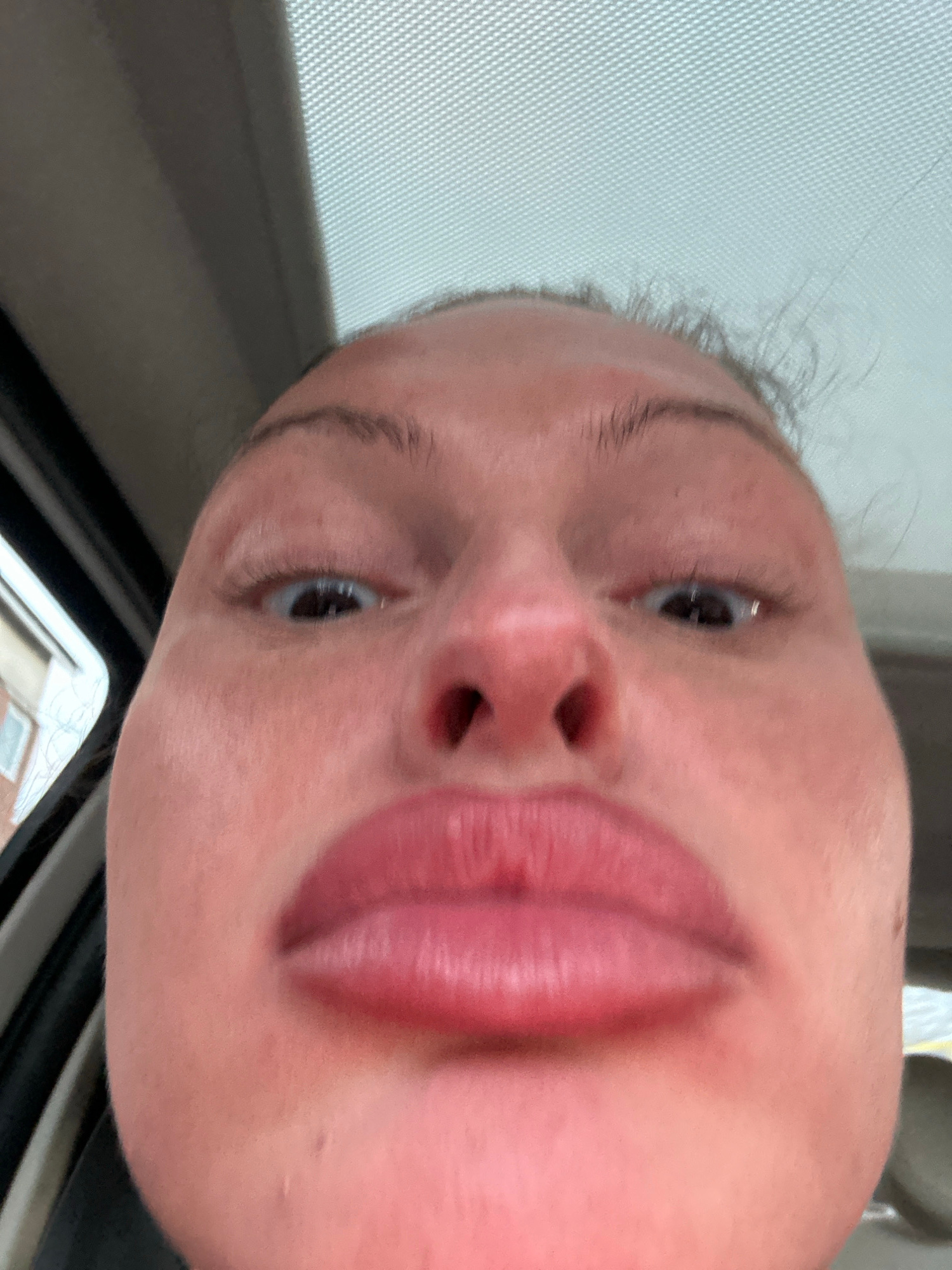 A close-up, low-angle view of a person's face, possibly female, is centered in the frame. The face is oriented at an angle, with the forehead at the top left and the chin at the bottom right. The pers…read more
