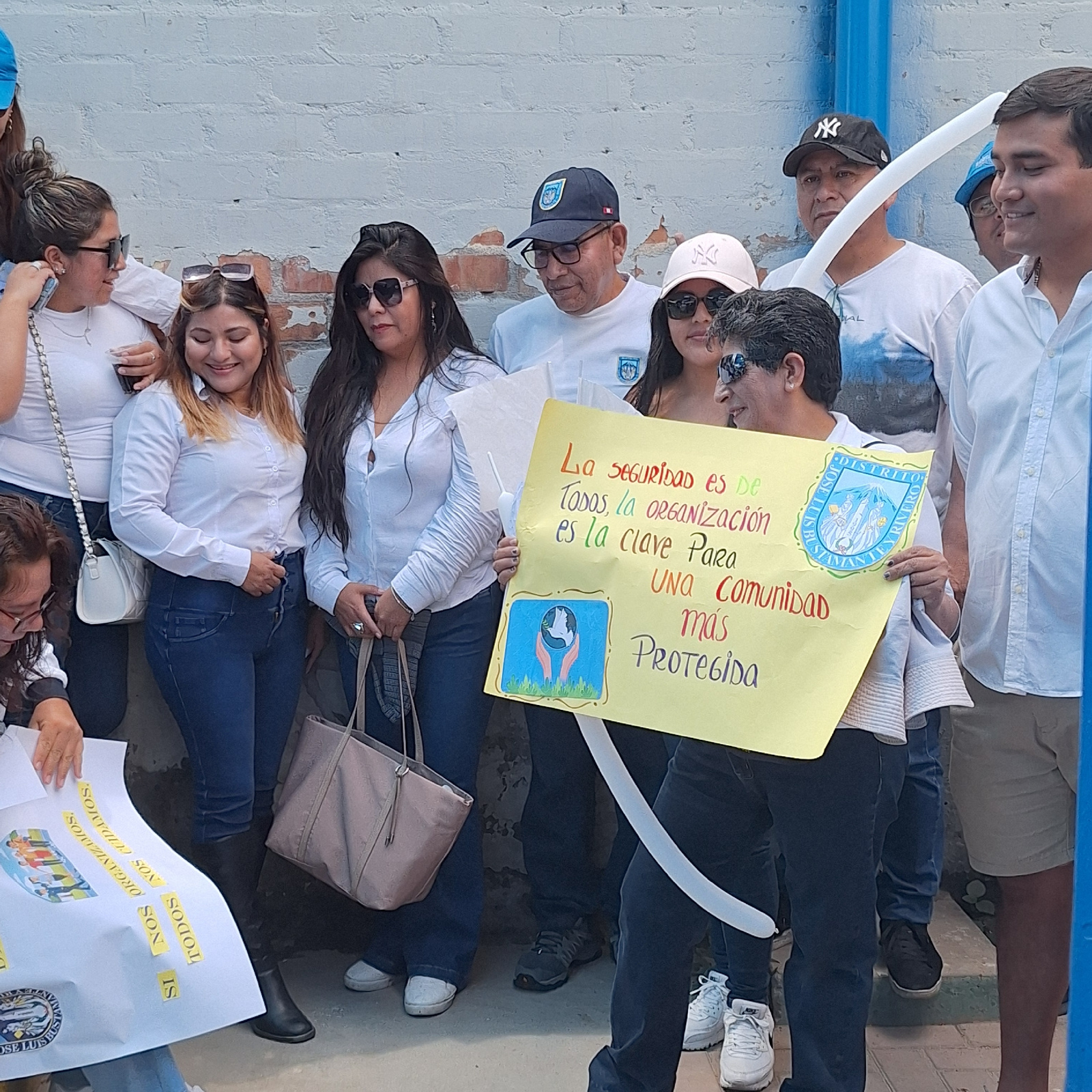 A group of people stand outside in the city of José Luis Bustamante y Rivero, Peru. The group is holding signs with messages in Spanish, one of which reads, "La seguridad es de todos, la organización…read more