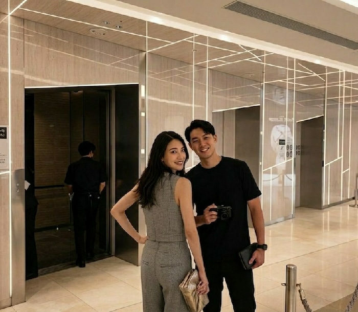 An indoor scene within a modern building, potentially a hotel or office lobby, is depicted in Chuo, Japan. Two individuals of East Asian descent, a man and a woman, stand in the mid-ground, facing andβ¦read more