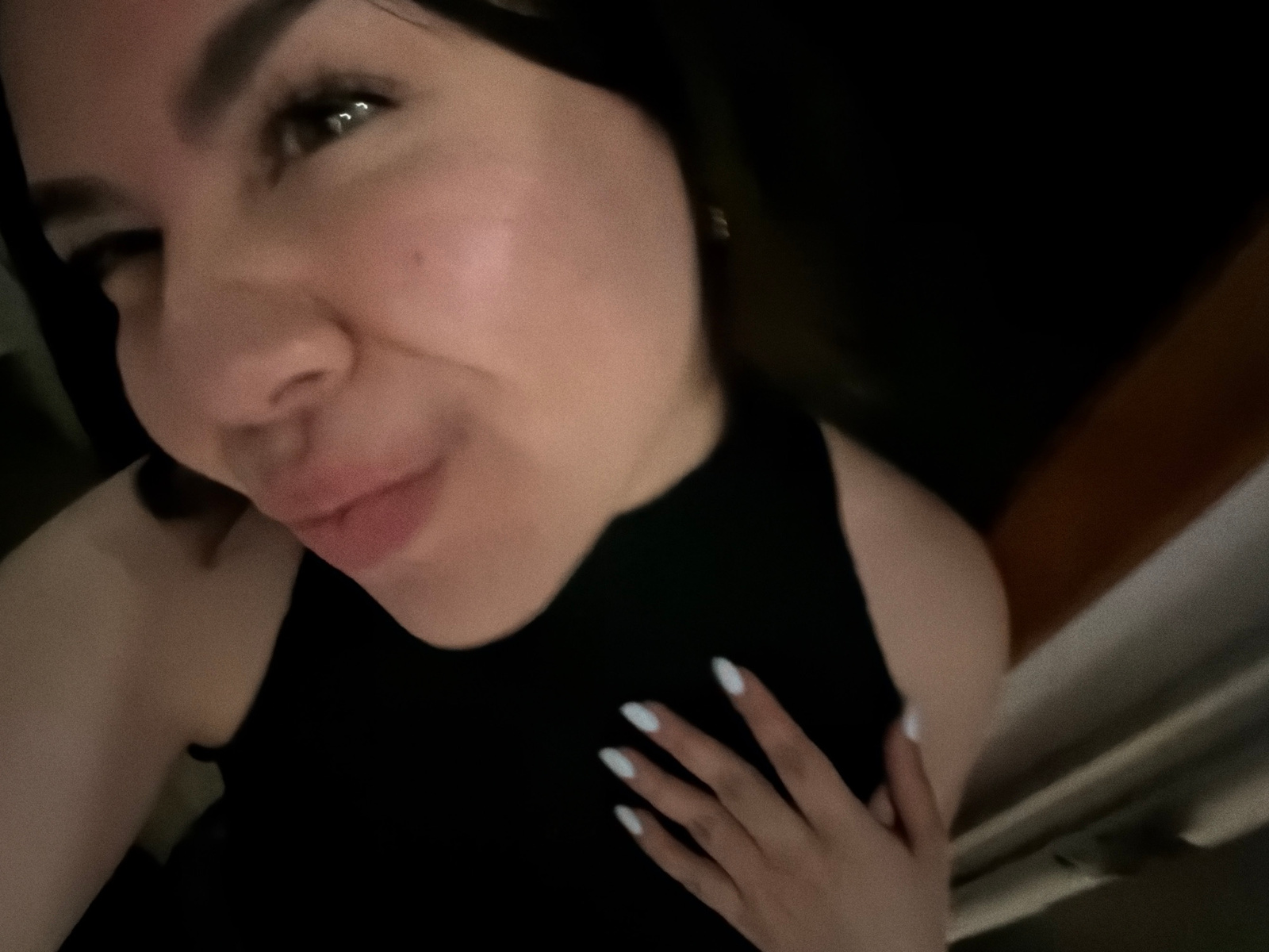 A close-up, slightly blurry, rotated image depicts a woman with fair skin and dark hair lying on what appears to be a dark surface. She is wearing a black top. Her left hand, with white manicured nail…read more