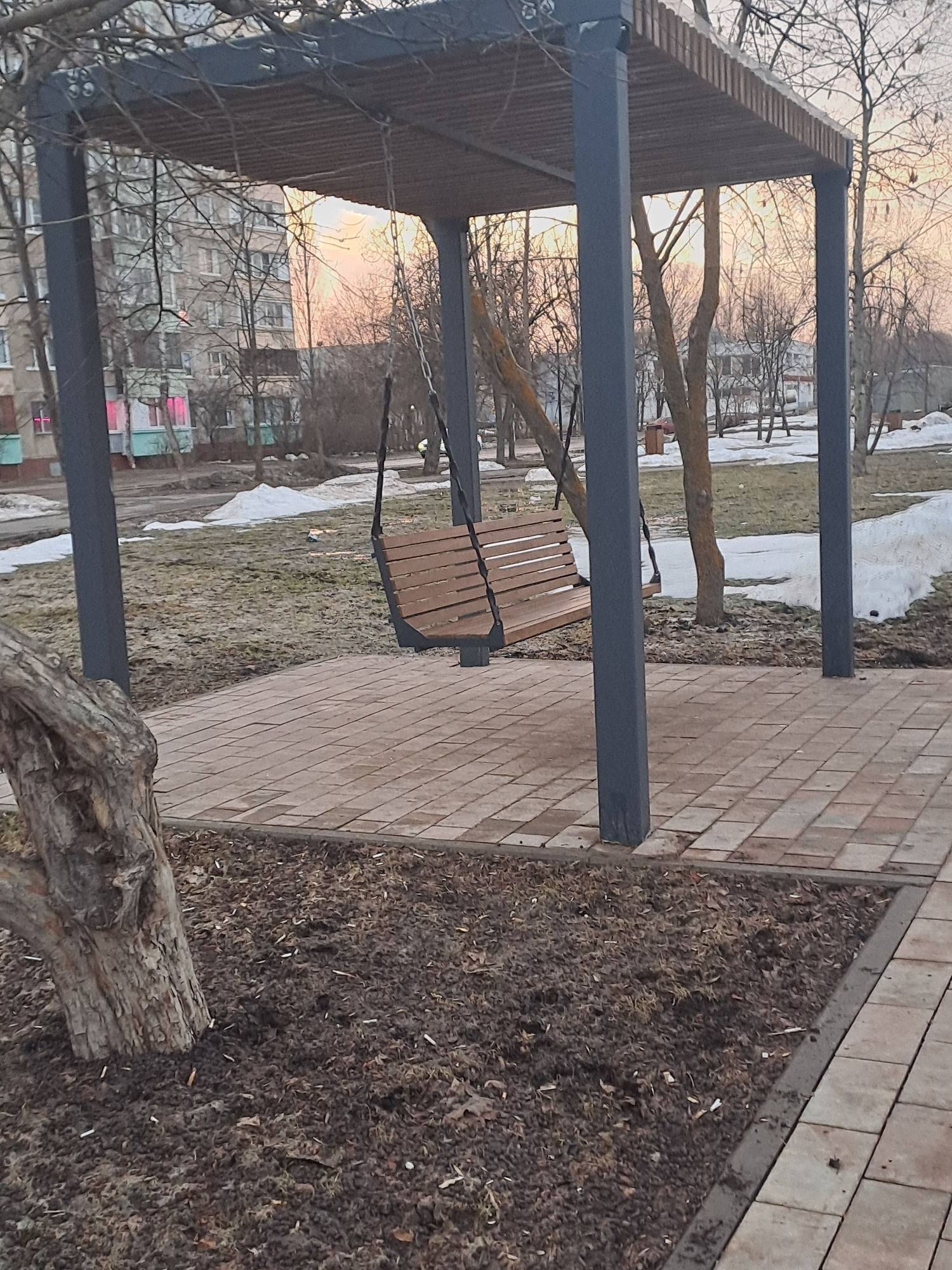An outdoor scene in Elektrostal, Russia, depicts a public amenity during what appears to be late winter or early spring, characterized by bare deciduous trees and patches of melting snow. The centralβ¦read more