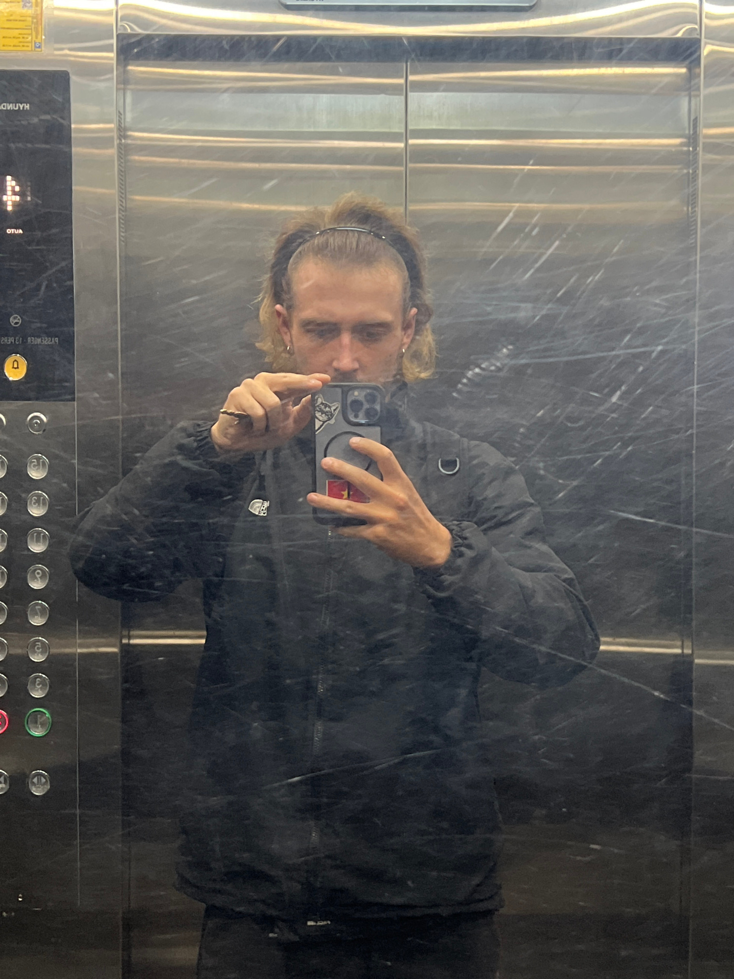 A man is taking a selfie in a mirrored elevator. The elevator panel shows button labels in Vietnamese, indicating the location is likely in Vietnam. Given the request to pinpoint the specific city, it…read more
