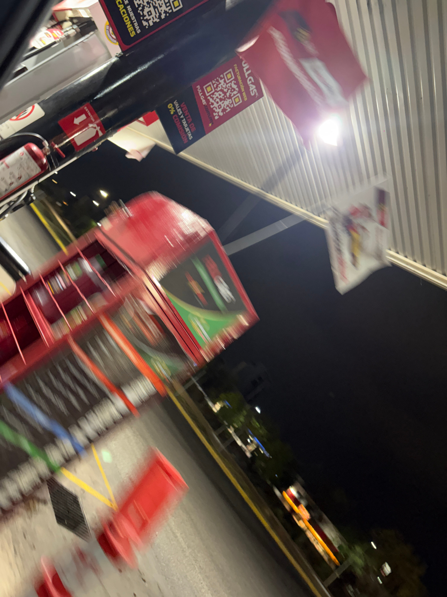 The image shows a gas station in San Bernardino Tlaxcalancingo, Mexico, at night. The gas pump is equipped with a fire extinguisher and signage advertising "FULLGAS" and "FACTURACIÓN WEB". A sign also…read more