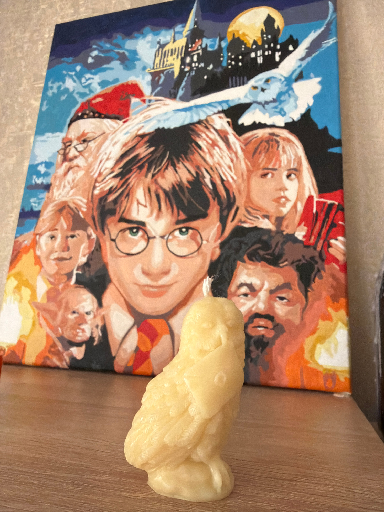 A colorfully painted canvas depicting characters from the "Harry Potter" franchise is visible. The central figure appears to be Harry Potter himself, distinguishable by his signature glasses and facia…read more