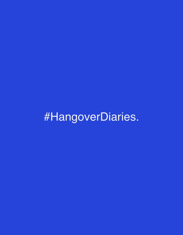 A solid blue background with the hashtag "#HangoverDiaries." written in white, sans-serif font. The text is centered both vertically and horizontally in the image.