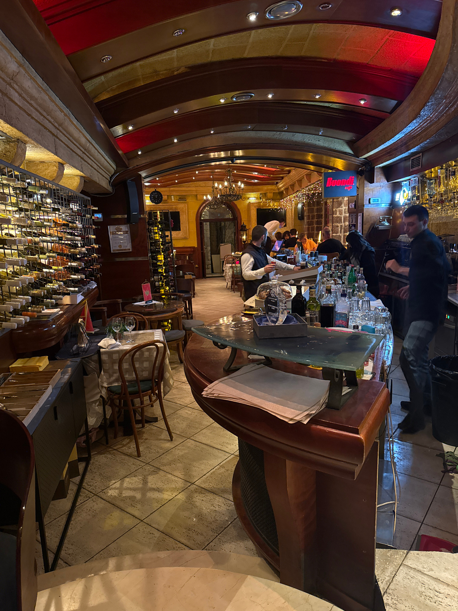 The image shows the interior of a bar or restaurant in Kotor, Montenegro. The location has an elegant, old-world feel with arched ceilings, wood paneling, and decorative lighting. Bartenders are behin…read more