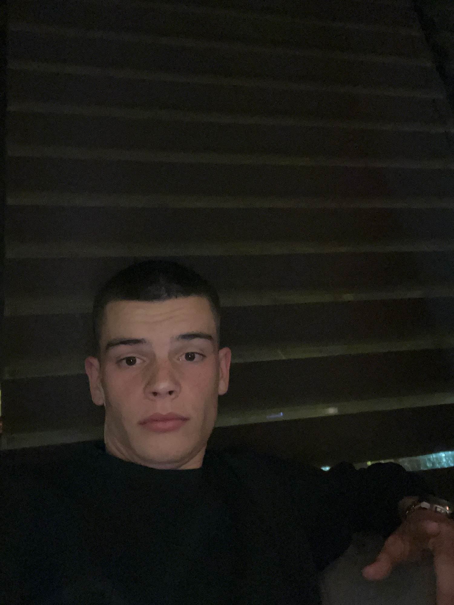 A close-up shot features a young man with closely cropped dark hair, facing forward with a neutral expression. He is wearing a dark-colored garment, likely a sweater or shirt. To the left of the frame…read more