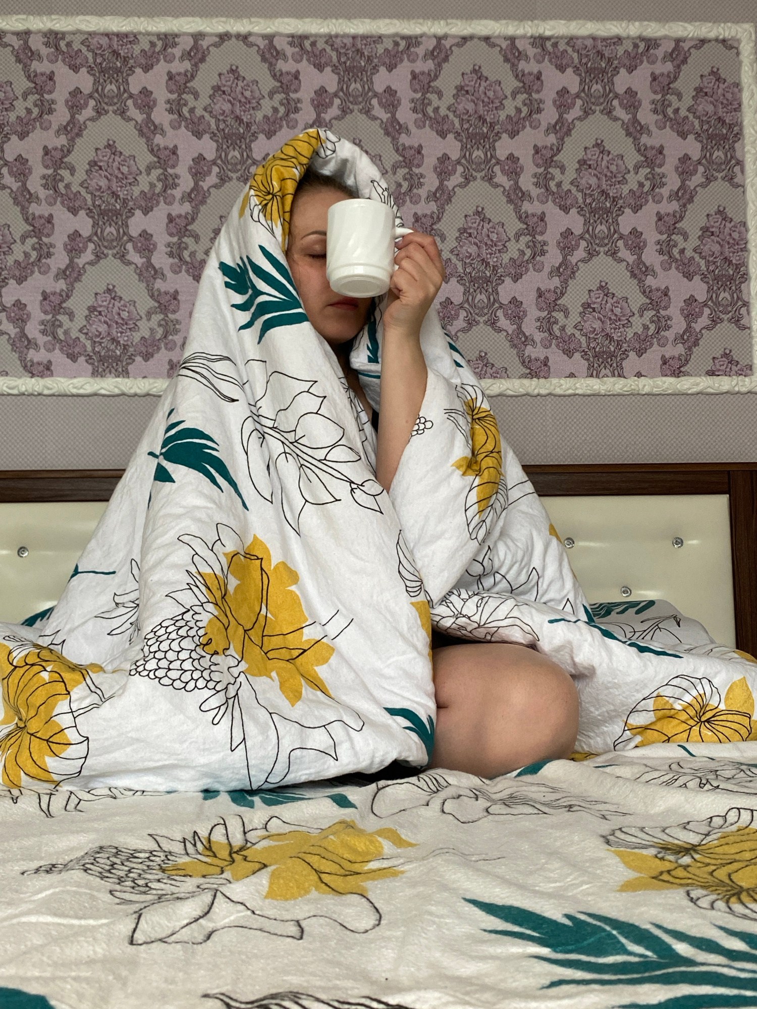The media file presents an intimate indoor scene, possibly a bedroom, captured from a top-down perspective and rotated 90 degrees counter-clockwise. A person, likely a child or young adult, is lying…read more