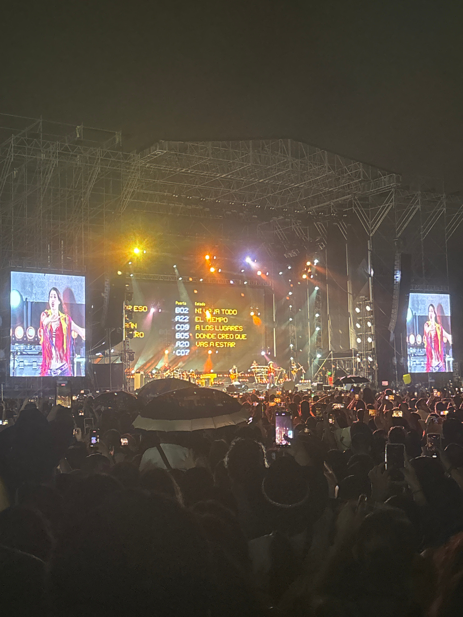 This image shows a concert scene at night, likely in Tampico, Mexico. A large crowd is visible, with many people holding up their phones to record the performance. The stage is elaborate, featuring a…read more