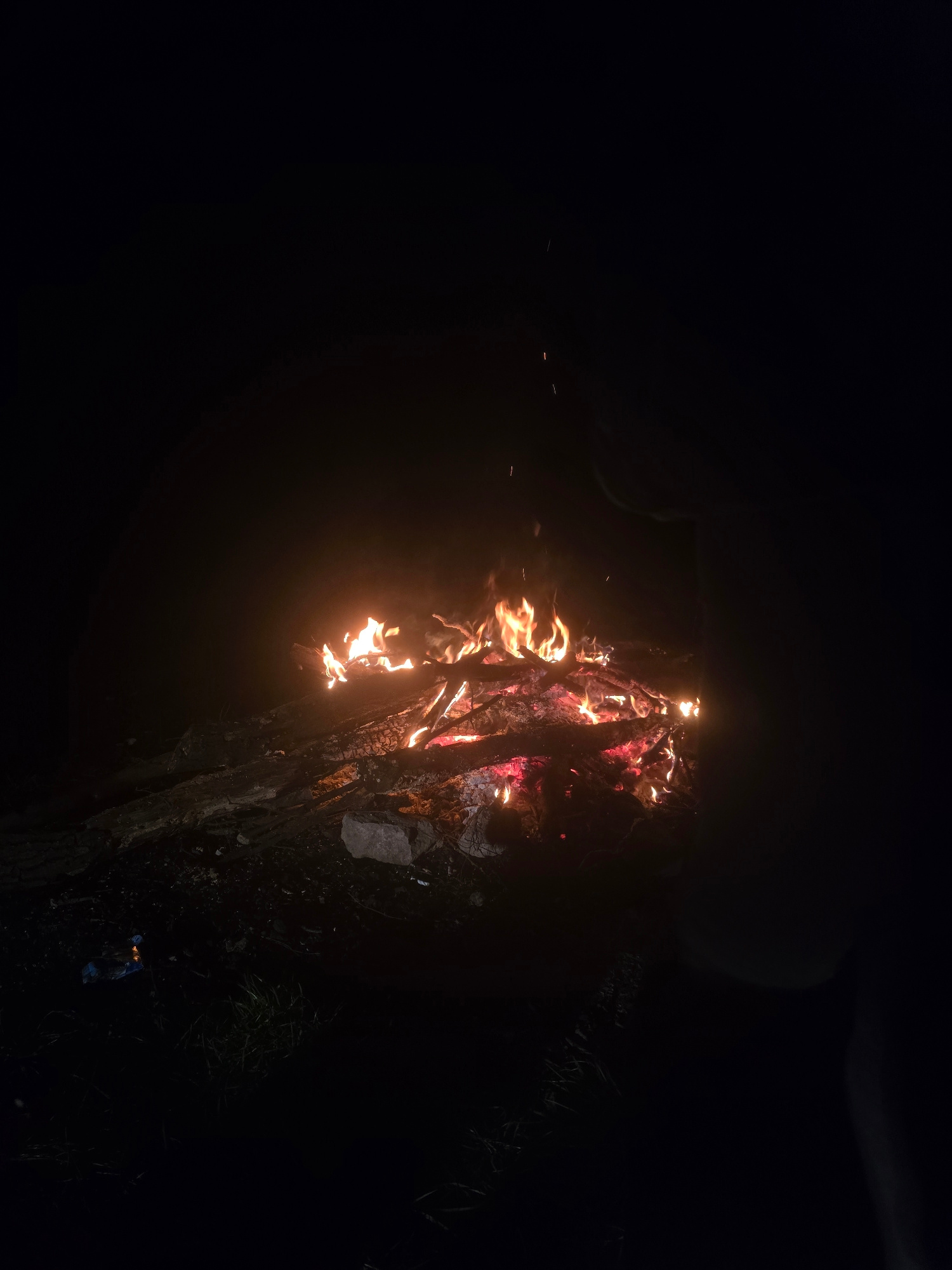 A fire burns in the darkness, possibly on a tree. It is not possible to determine the location in Yambol, Bulgaria from this image. There are no people visible.
