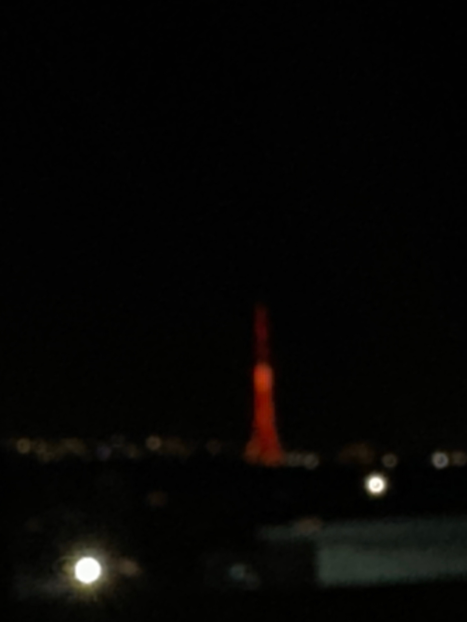 The image appears to be a nighttime shot of the Yerevan TV Tower in Yerevan, Armenia. The tower is illuminated in red light and can be seen on the right side of the image. There are also some blurry s…read more