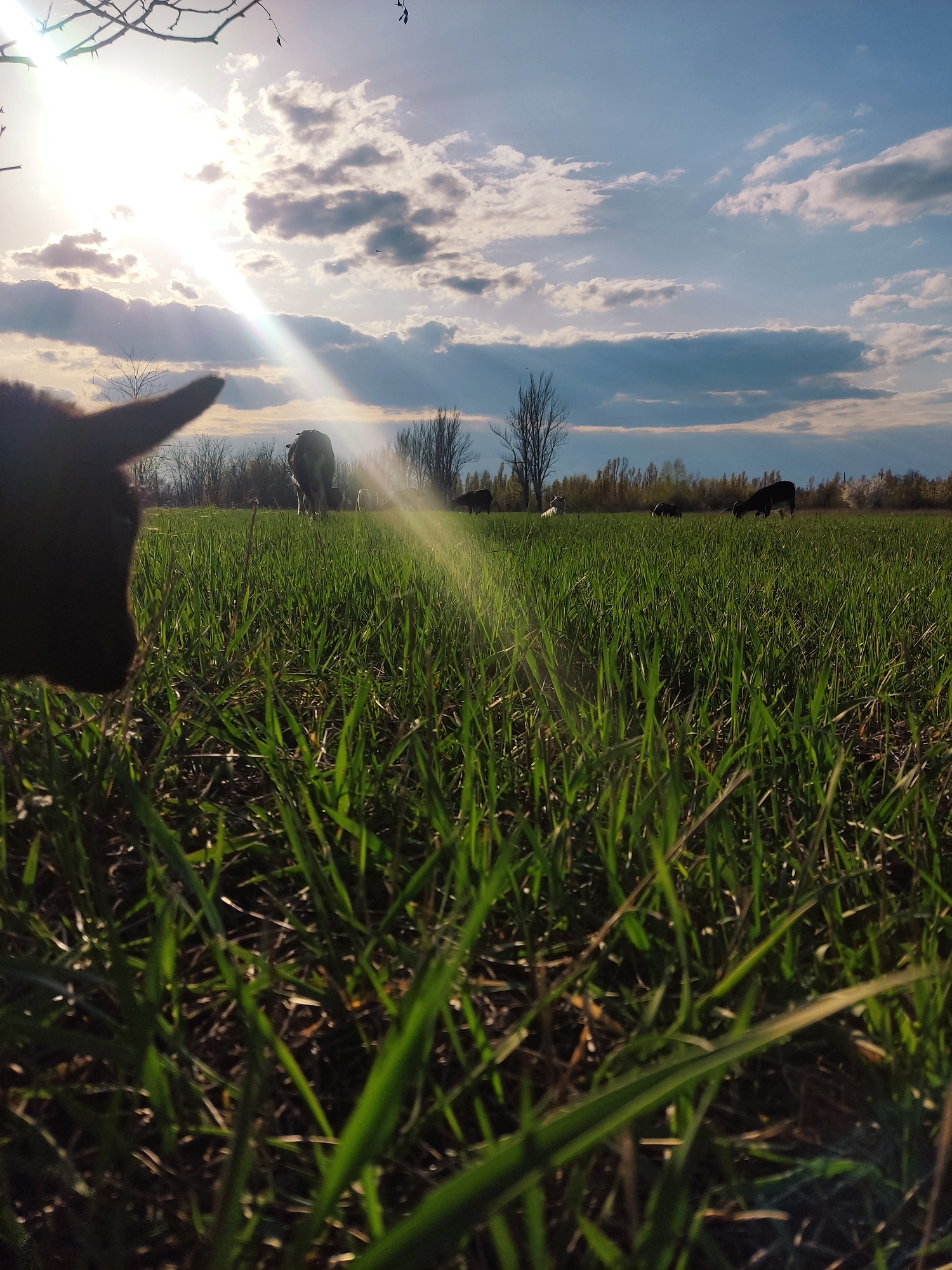 This media file presents a low-angle, immersive view of a rural landscape in Maloivanivka, Ukraine, bathed in the warm light of what appears to be either sunrise or sunset. The perspective is from wit…read more