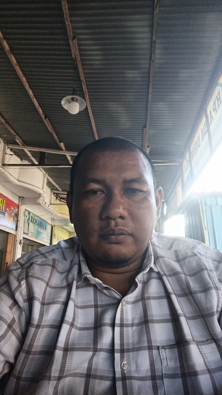 The image depicts a street scene in Lhokseumawe, Indonesia. The day is sunny with a clear blue sky. The street is asphalt and appears to be in a commercial area with buildings lining both sides. Most…read more