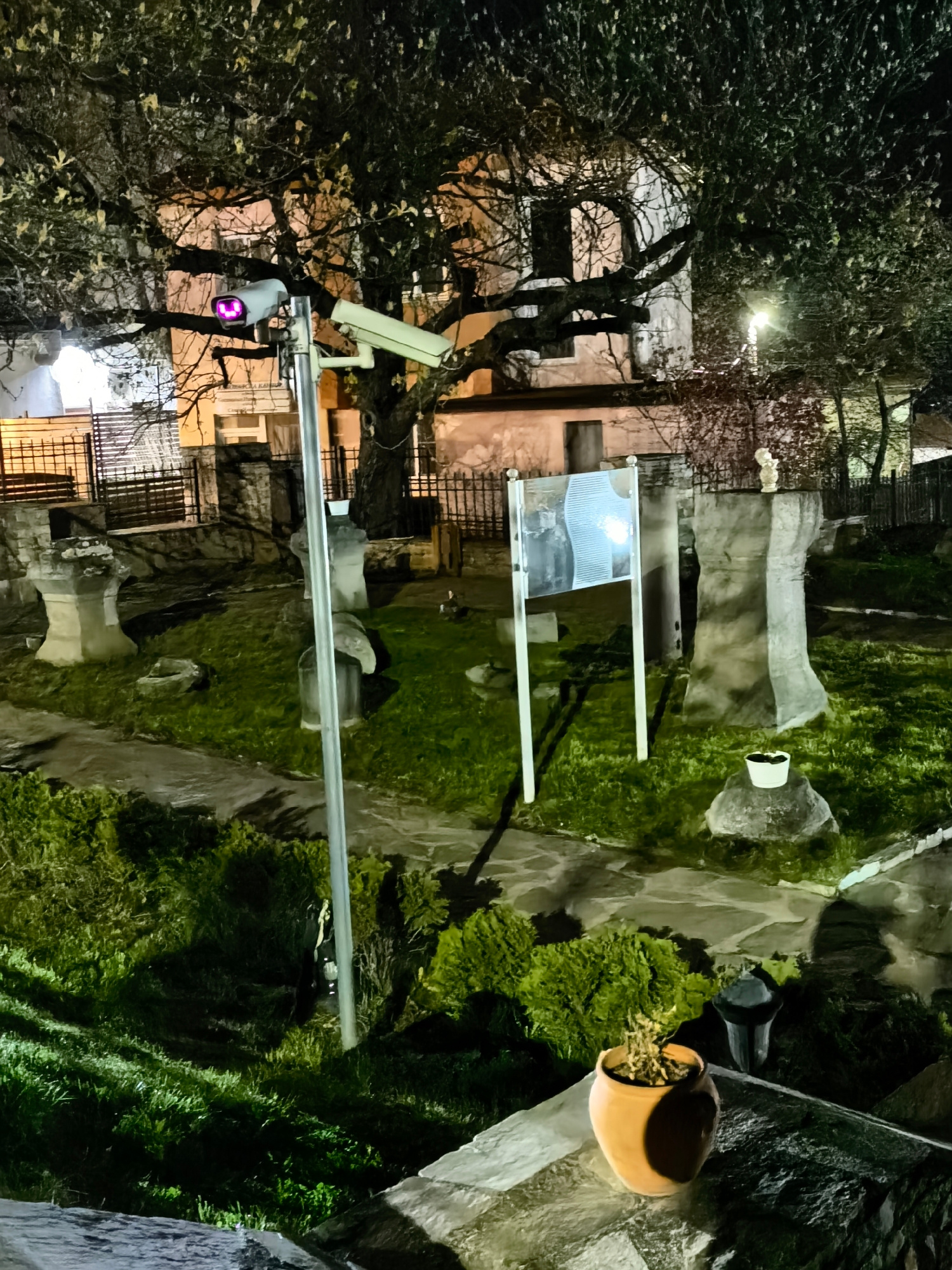 Captured at night, the photograph presents a location in the city of Unknown, Unknown. The scene is comprised of elements suggesting an outdoor area, possibly a garden or a historic site, illuminated…read more