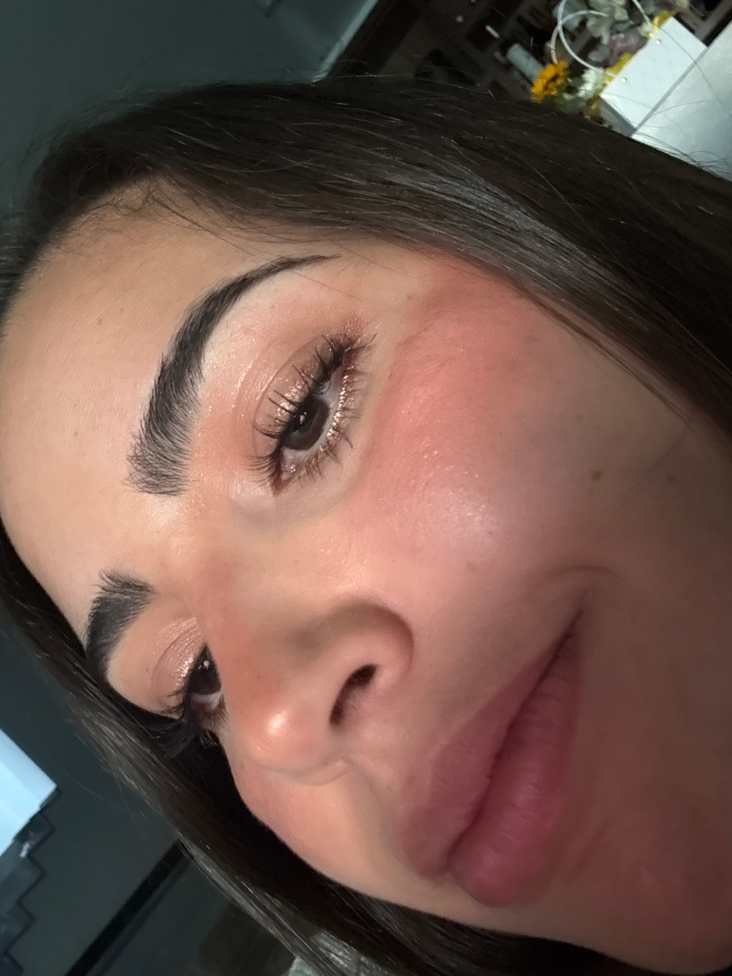 A close-up, upward-angled portrait of an individual, likely female, taken indoors within San Bernardino Tlaxcalancingo, Mexico. The subject's dark hair is visible along the top and left edges of the fâŚread more