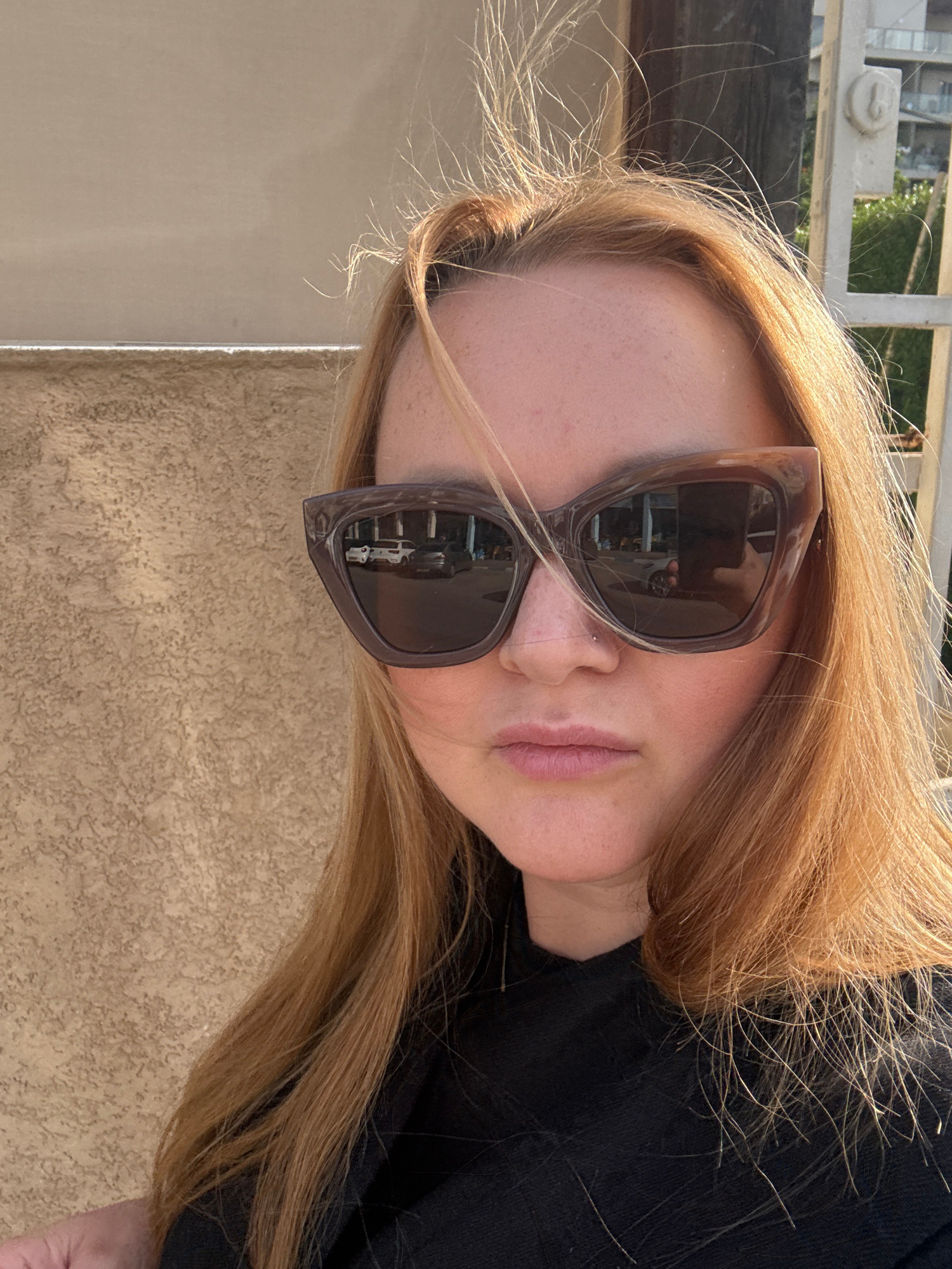 A rotated, close-up portrait shot of a person, likely a woman, with long, light brown or blonde hair in an outdoor setting in Ramat Gan, Israel. The strong, natural light suggests it is daytime, withβ¦read more