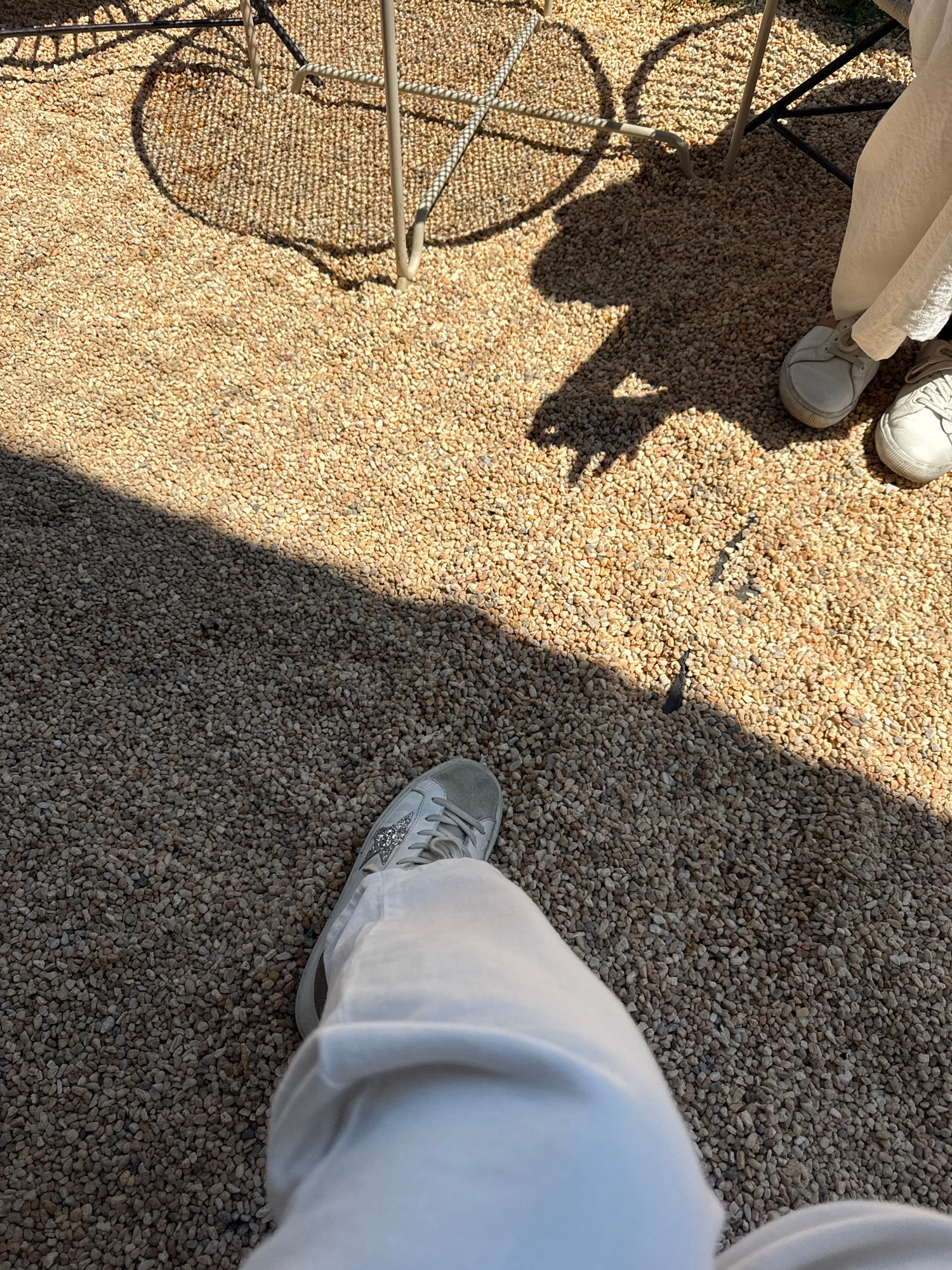 The image shows a ground-level view of a gravel surface in San Andrés Cholula, Mexico. The scene is partially lit by sunlight, creating a distinct shadow dividing the frame. In the upper left corner,…read more