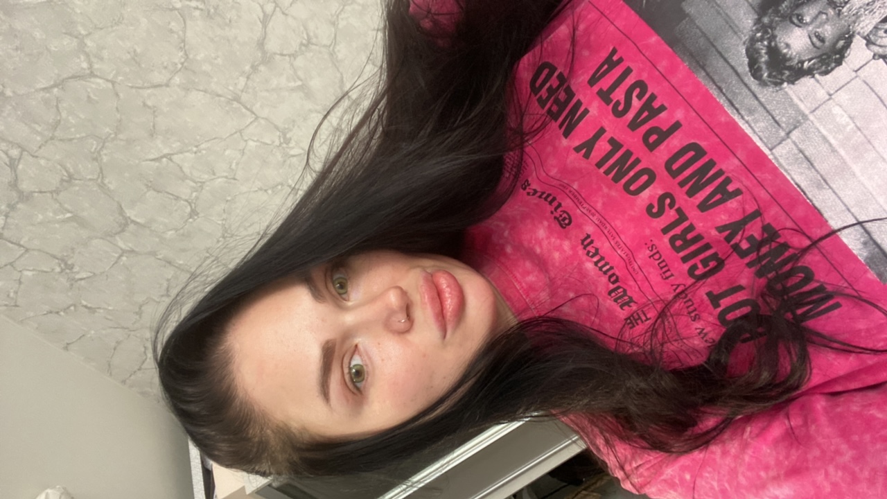 A woman with long, dark hair, a nose ring, and a tattoo on her shoulder is seen in a close-up shot. The tattoo appears to be of palm trees. She is wearing a delicate necklace. The background includes…read more