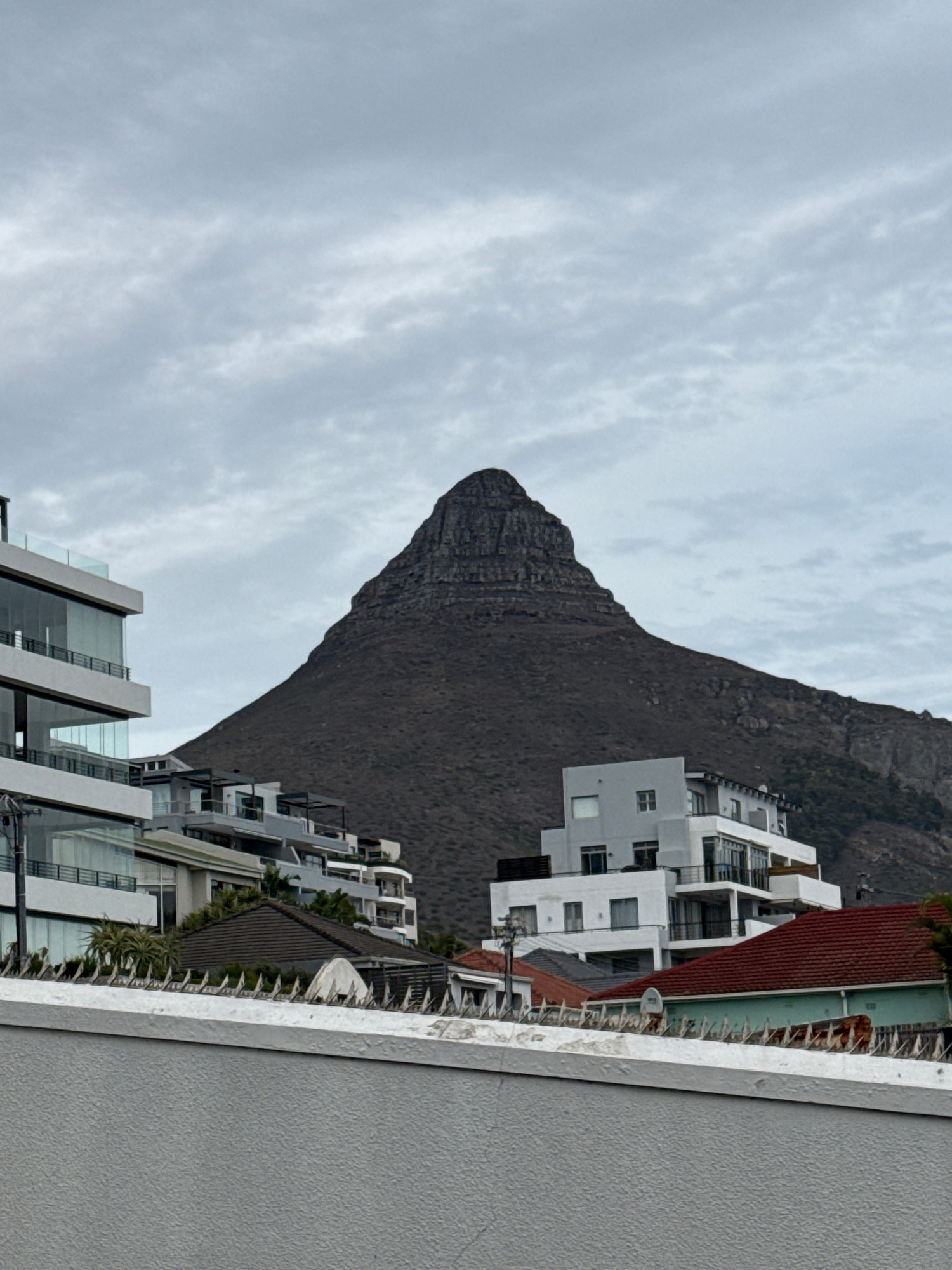 The image shows a view of Lion's Head mountain in Cape Town, South Africa, taken from an elevated position, possibly a building's upper floor or a balcony. The mountain dominates the background, with…read more