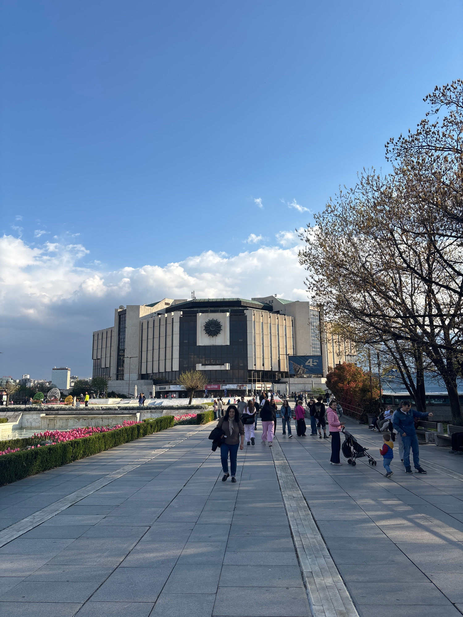 This image, captured in Sofia, Bulgaria, depicts a lively urban promenade running alongside a body of water on a daytime. The scene is dominated by a wide, paved pedestrian walkway that stretches from…read more