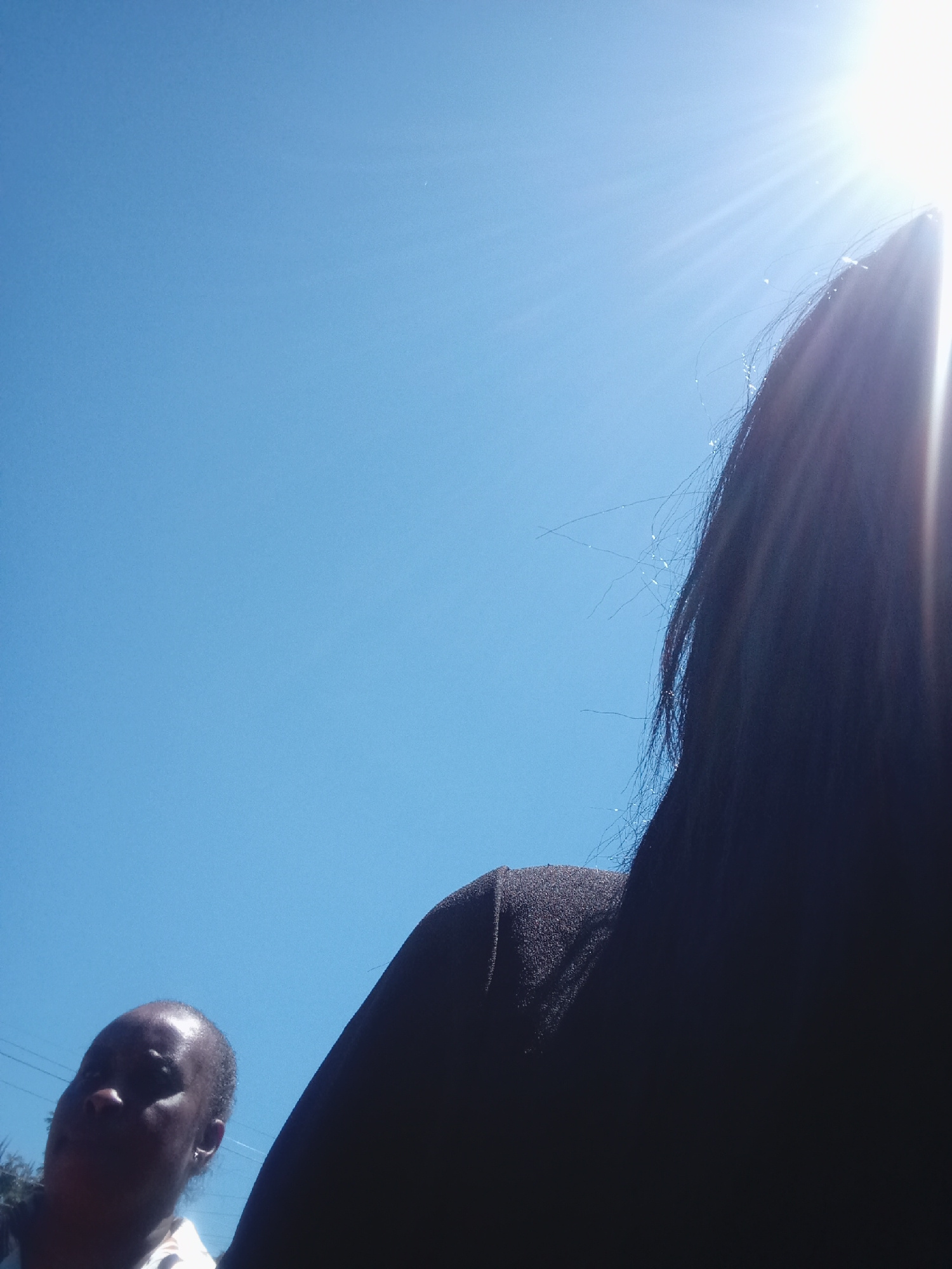 The photograph appears to be taken outdoors, potentially in the Mahiakalo ward of Kenya, although there are no clear landmarks to confirm this location. The sky is bright blue with the sun partially o…read more