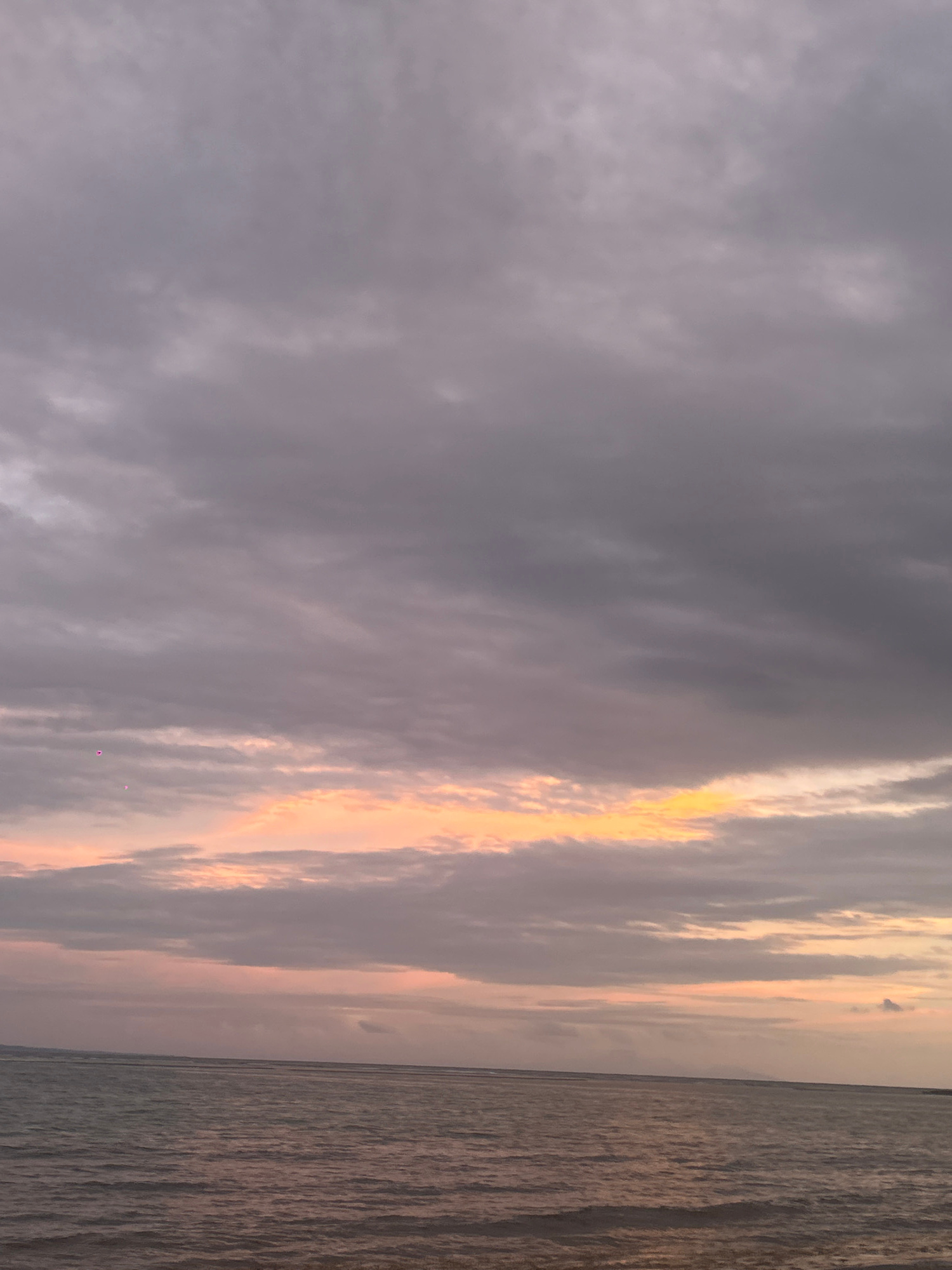 The image captures a landscape scene at dusk or dawn. The right side of the frame is dominated by a body of water, possibly the sea, with its surface reflecting muted colors of light. The left side of…read more